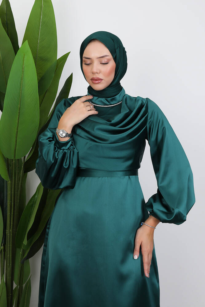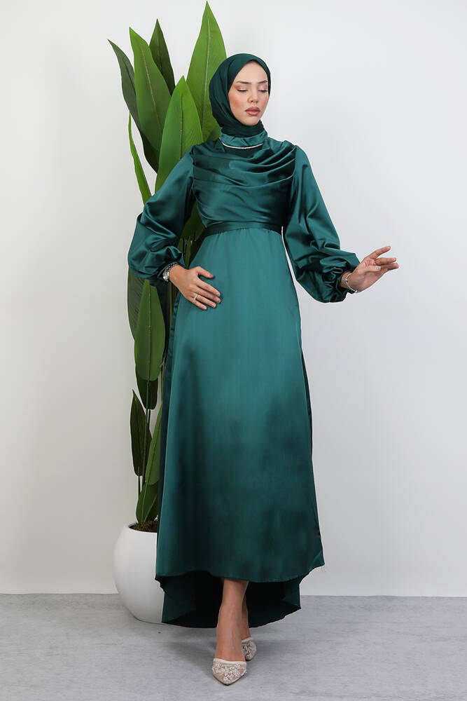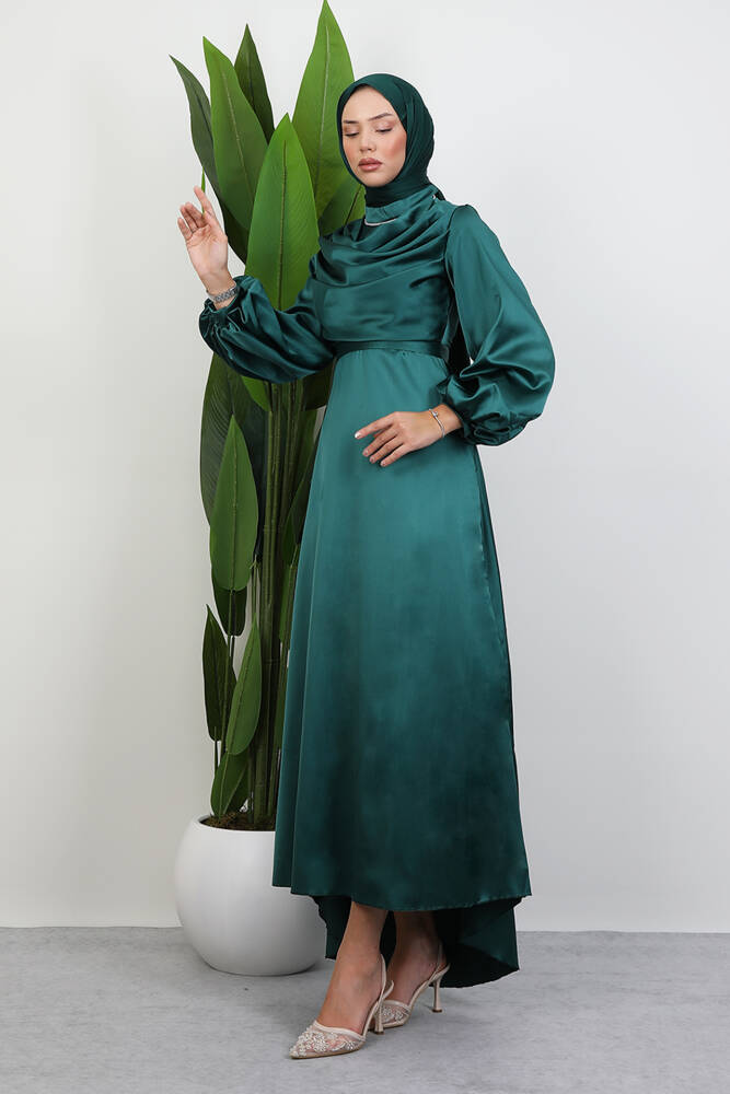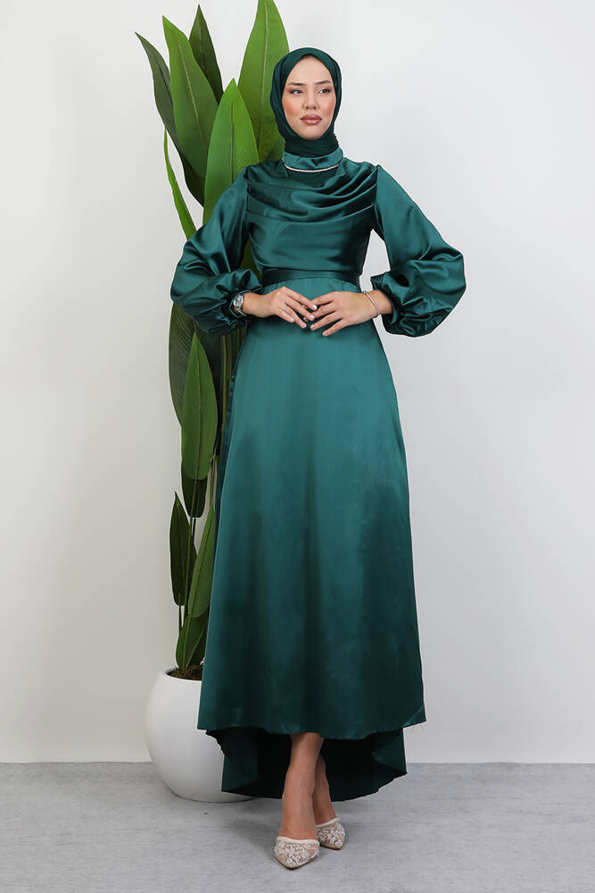 Kuyruklu Degaje Elbise Zümrüt