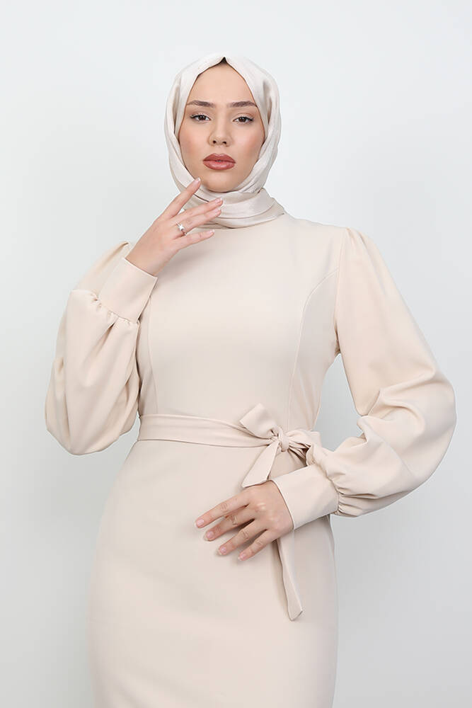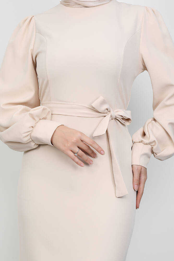 Lavin Krep Elbise Bej