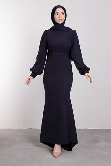 Lavin Krep Elbise Koyu Lacivert