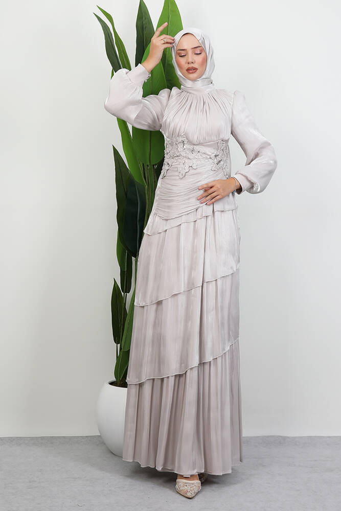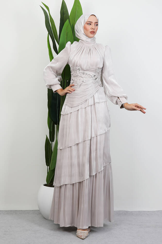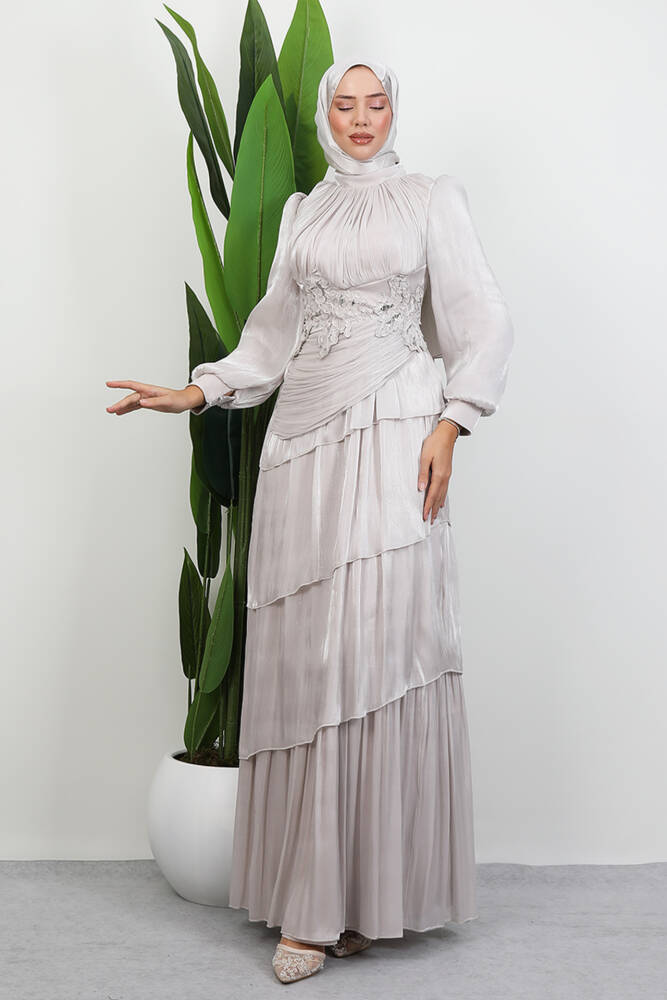Menekşe Kat Kat Abiye Bej