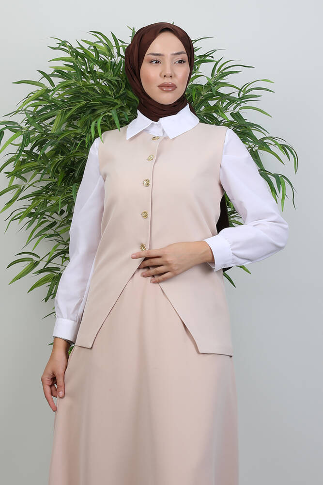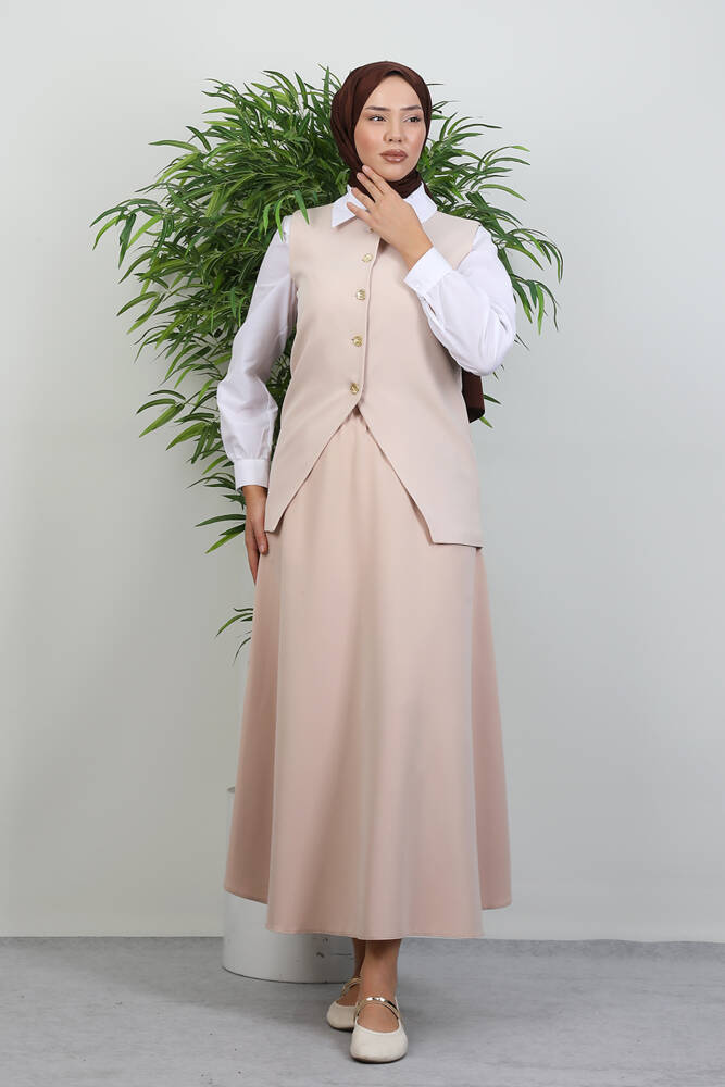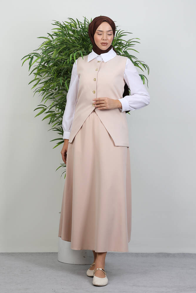 -AKSESUAR : Düğmeler açılır kapanır.Etek bel lastiklidir.