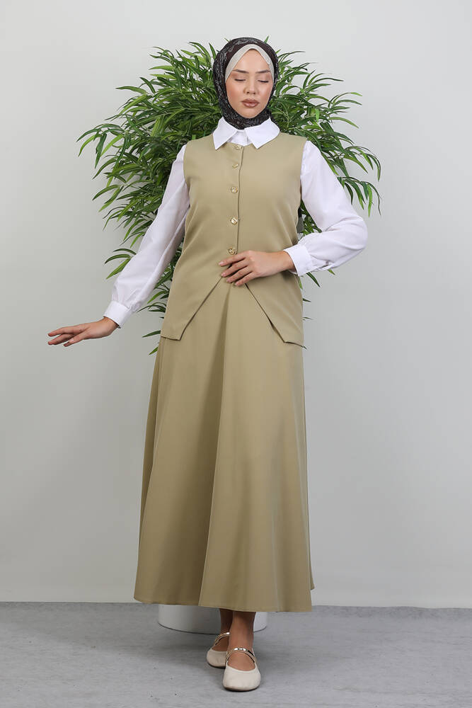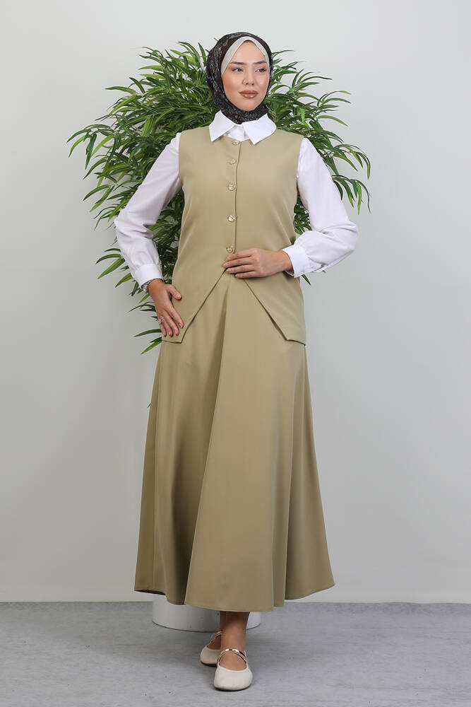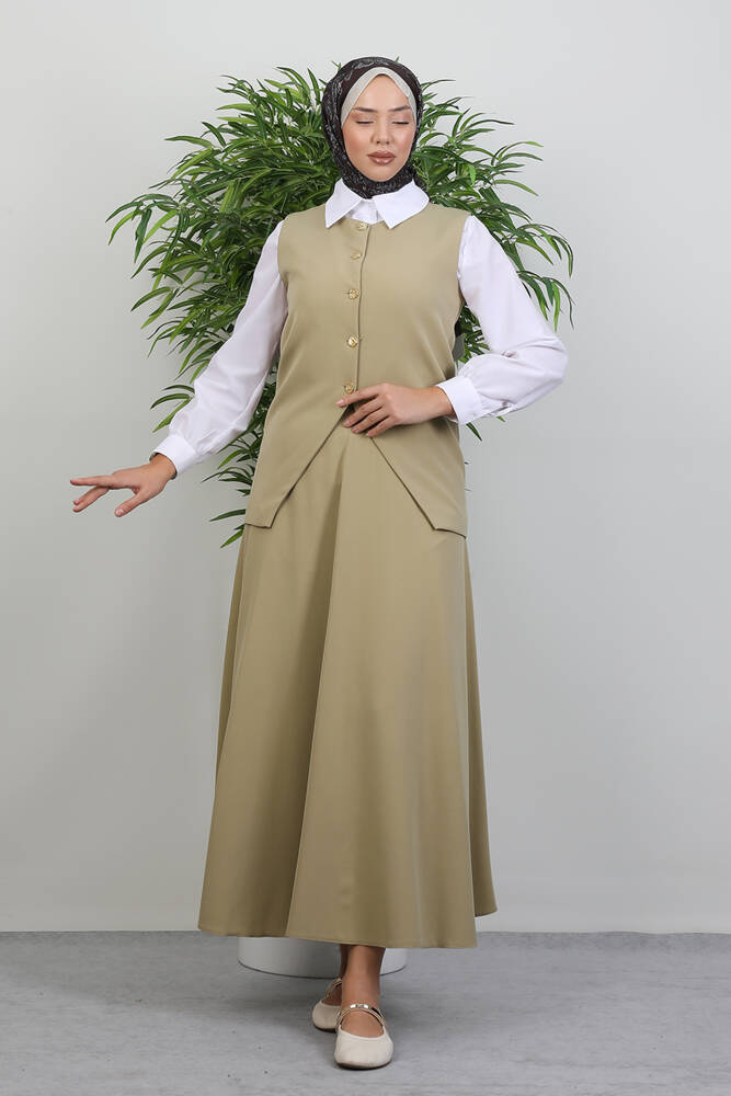 -AKSESUAR : Düğmeler açılır kapanır.Etek bel lastiklidir.