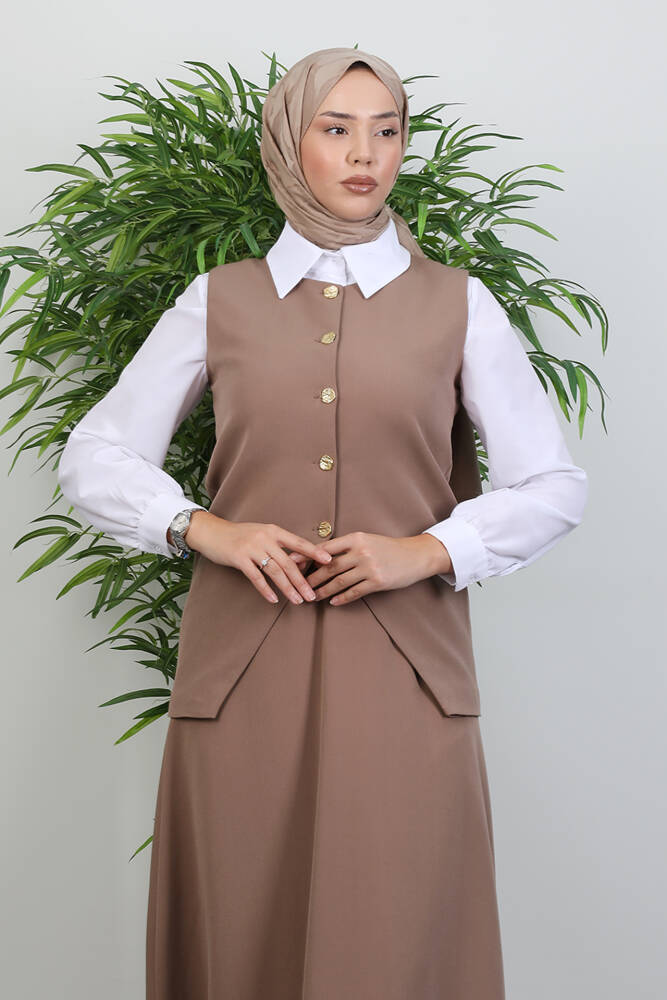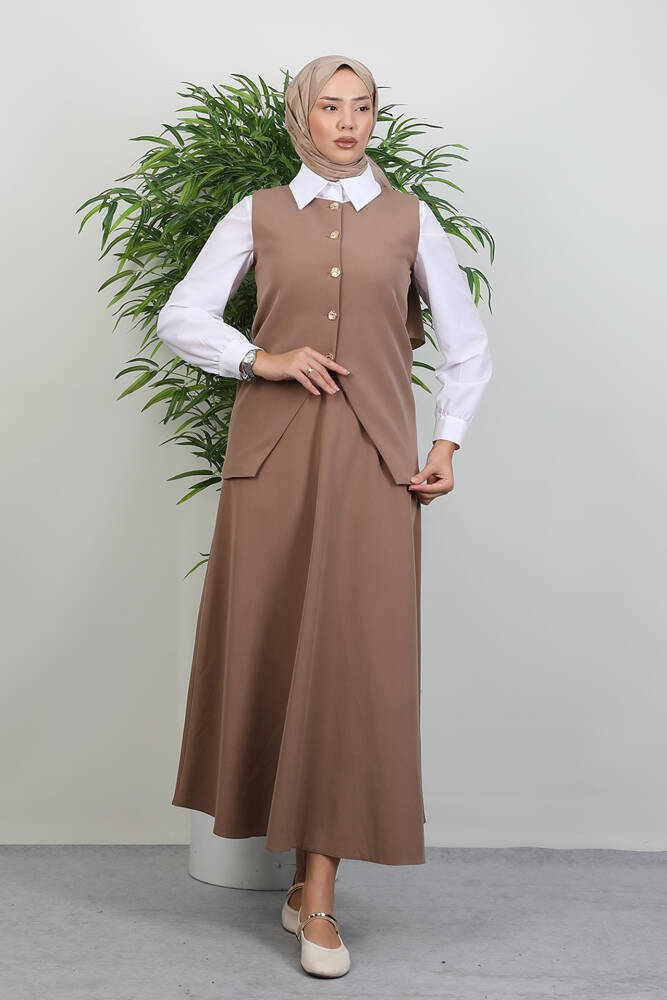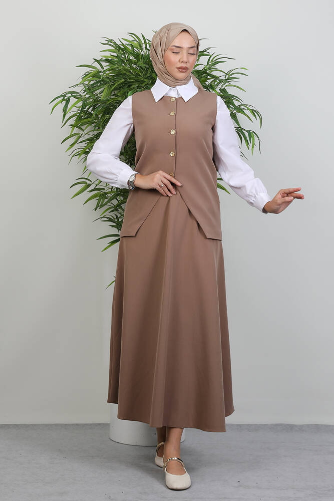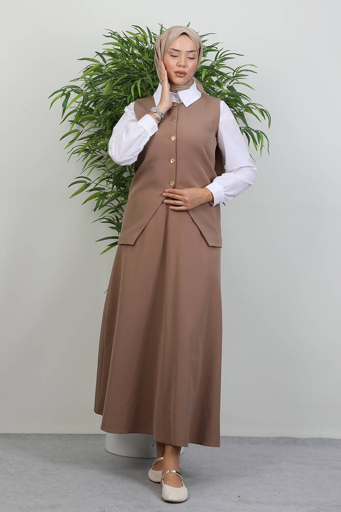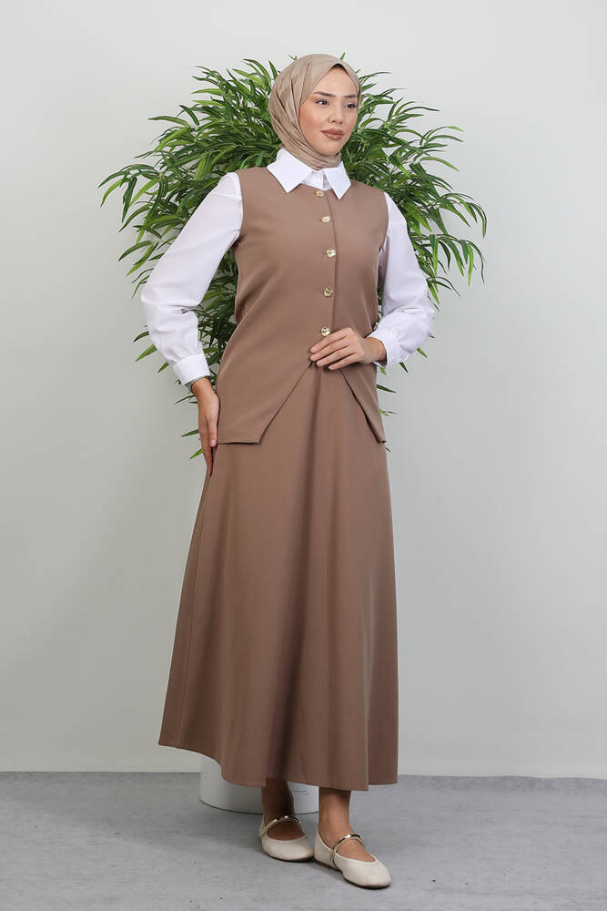 -AKSESUAR : Düğmeler açılır kapanır.Etek bel lastiklidir.