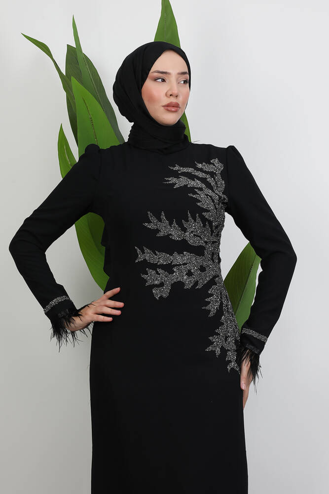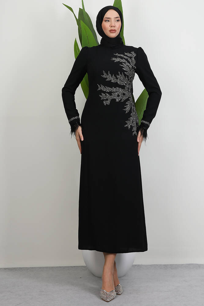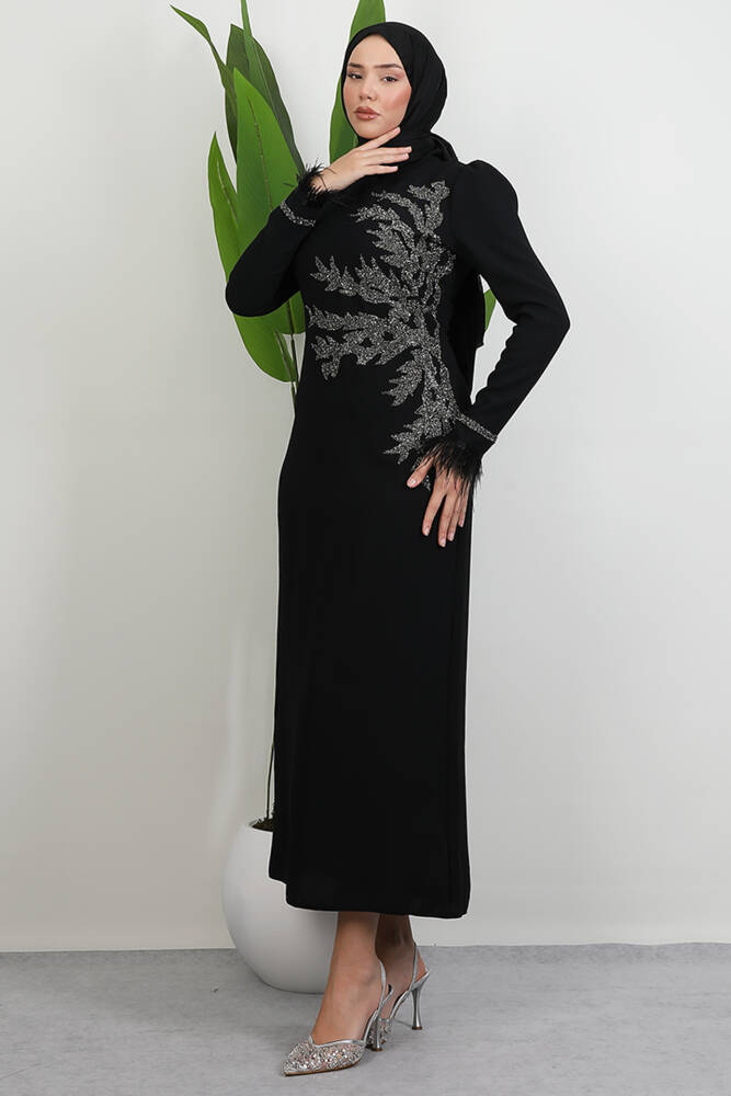 -AKSESUAR :Sırttan kullanılabilir fermuar mevcuttur.Üzerindeki taşlar ürüne yapıştırmadır.Koldaki tüyler ürüne dikilidir.