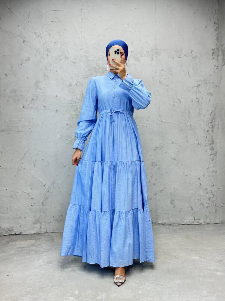 Modern Beli Ayarlanabilir Elbise Mavi