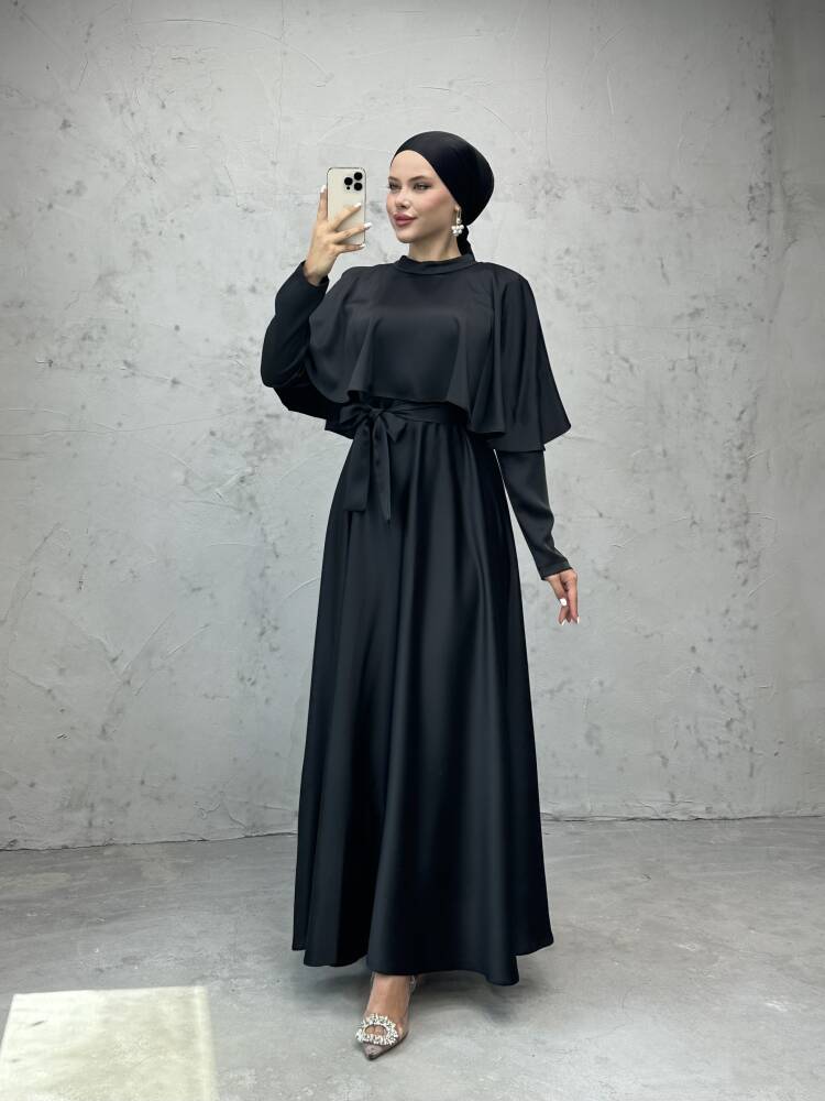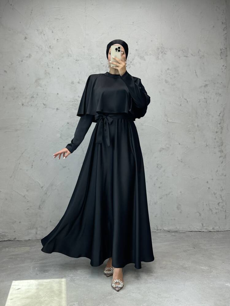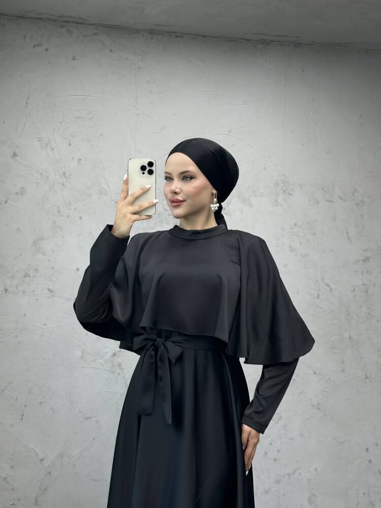 Mona Pelerinli Elbise Siyah