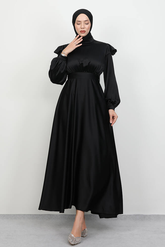 Omuz Detay Elbise Siyah