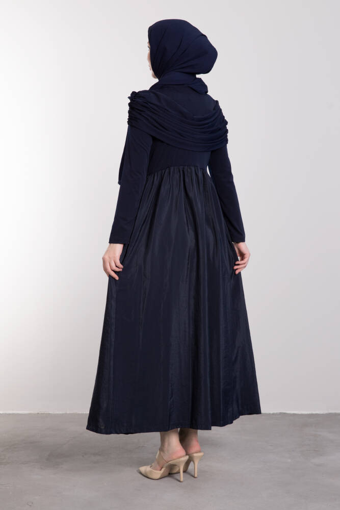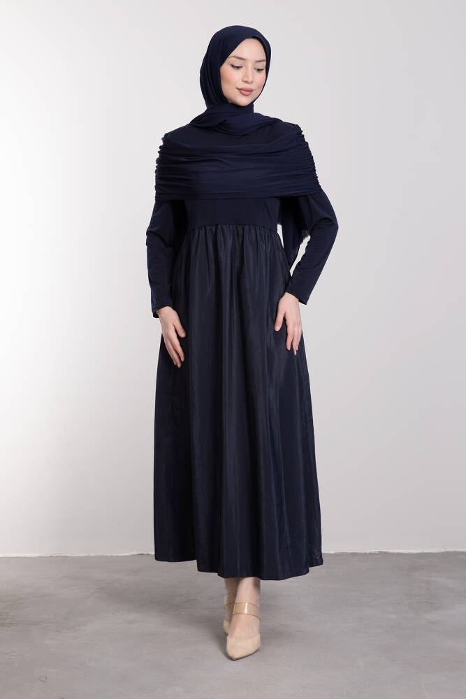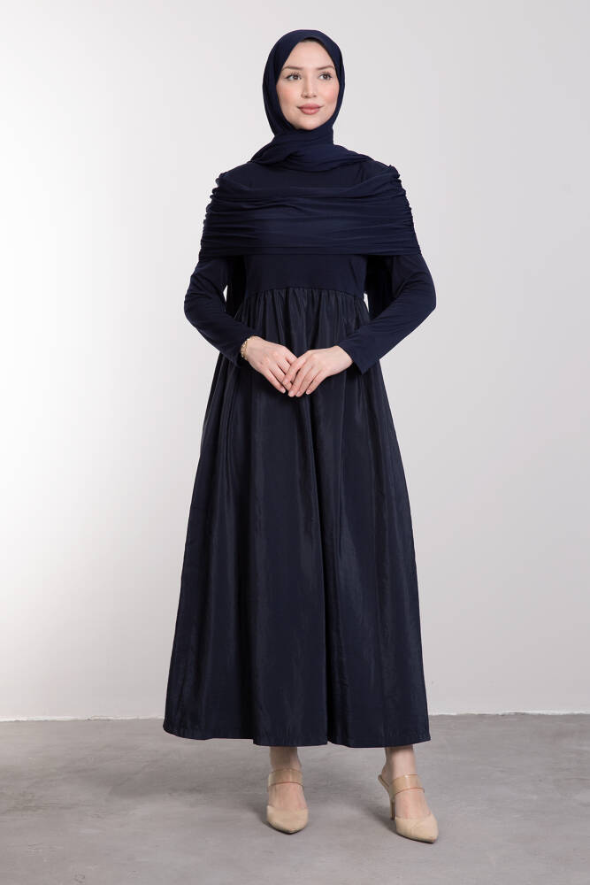 Omuzlarından Parça Büzgülü Elbise Lacivert