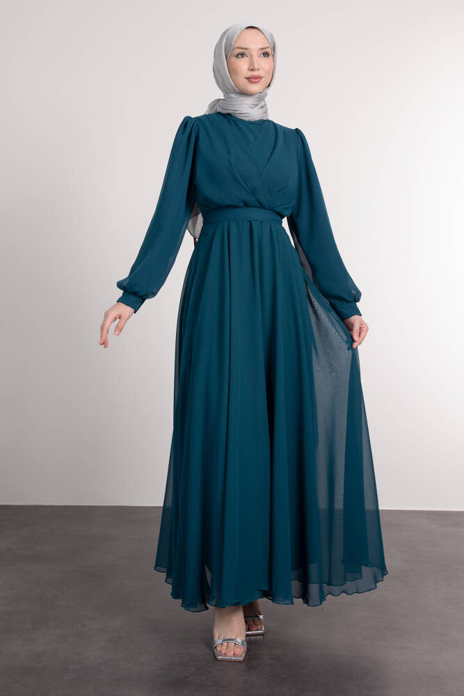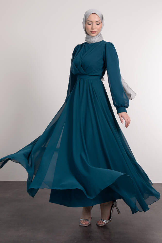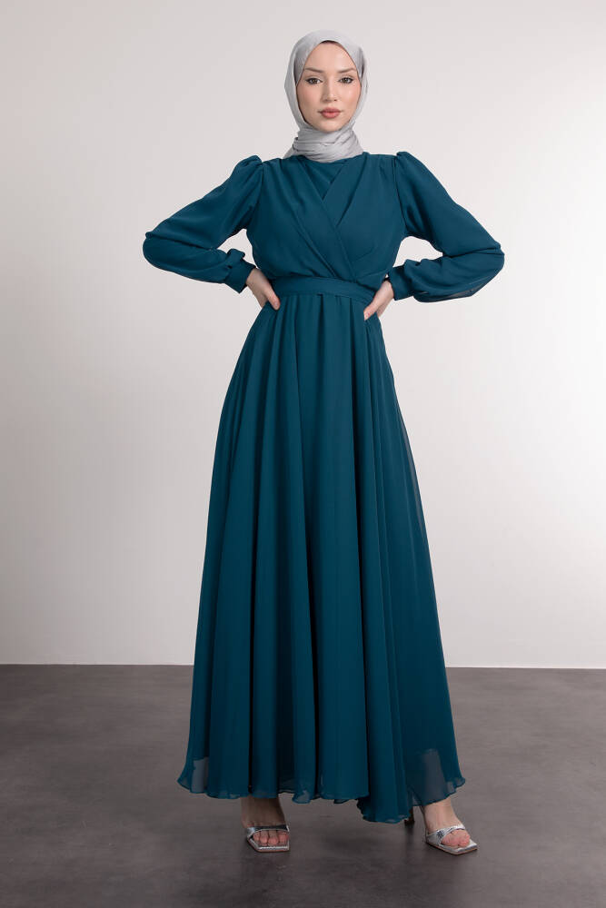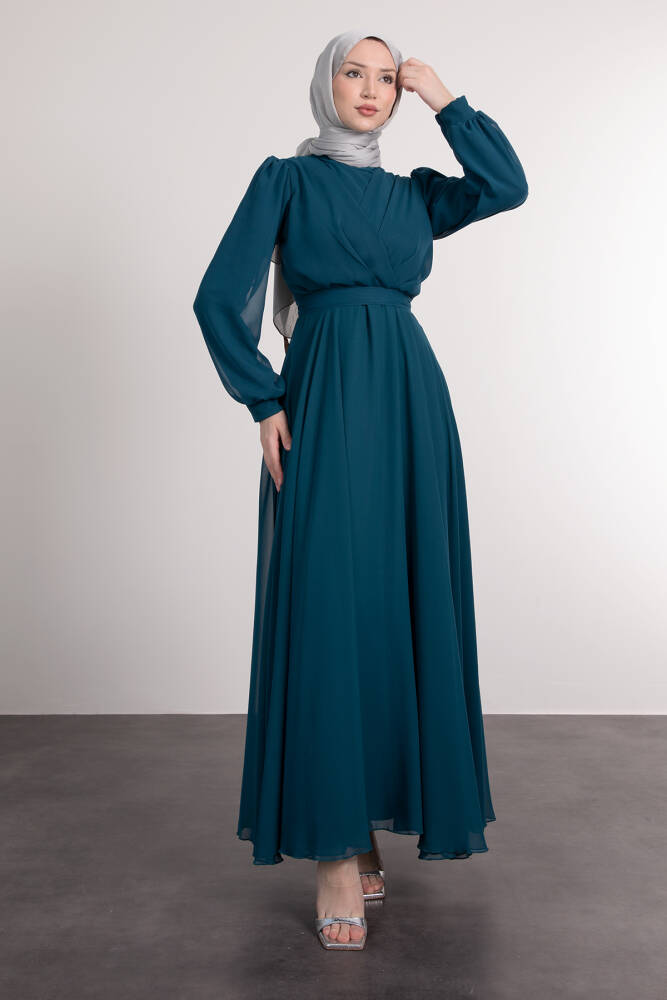 Önü Çapraz Şifon Elbise Petrol