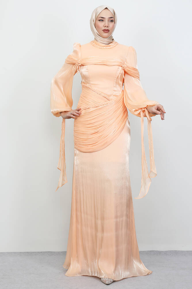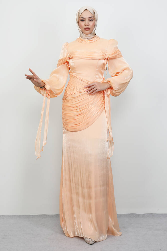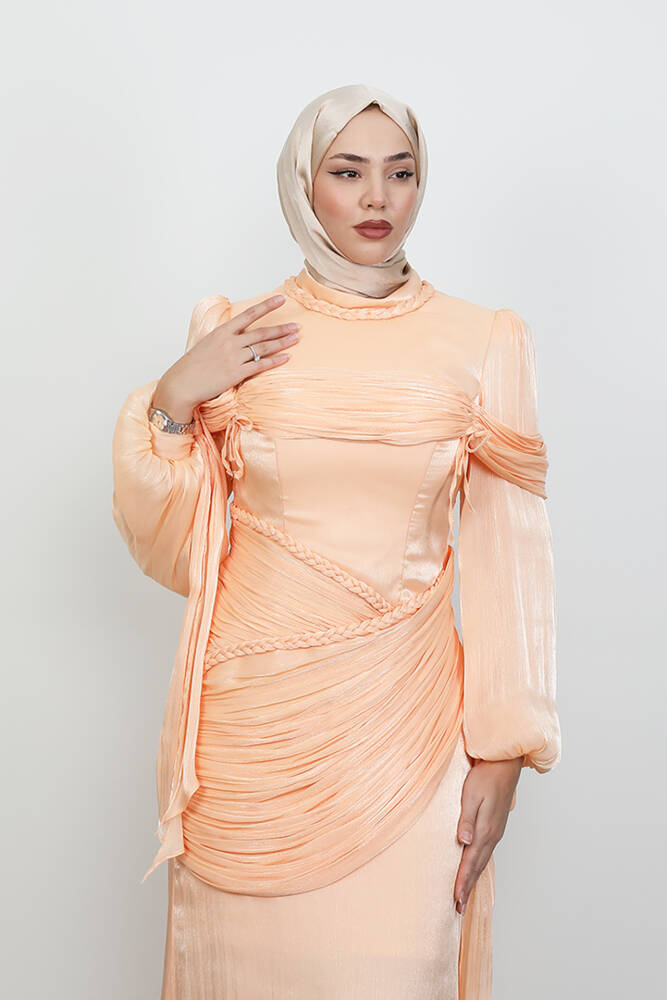 Örgü Detay Abiye Soft Turuncu