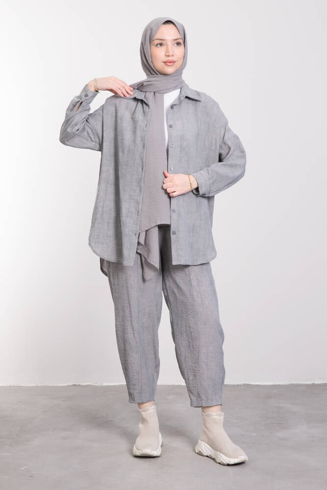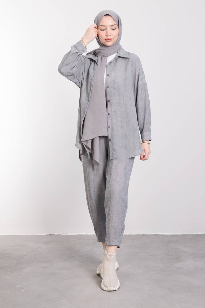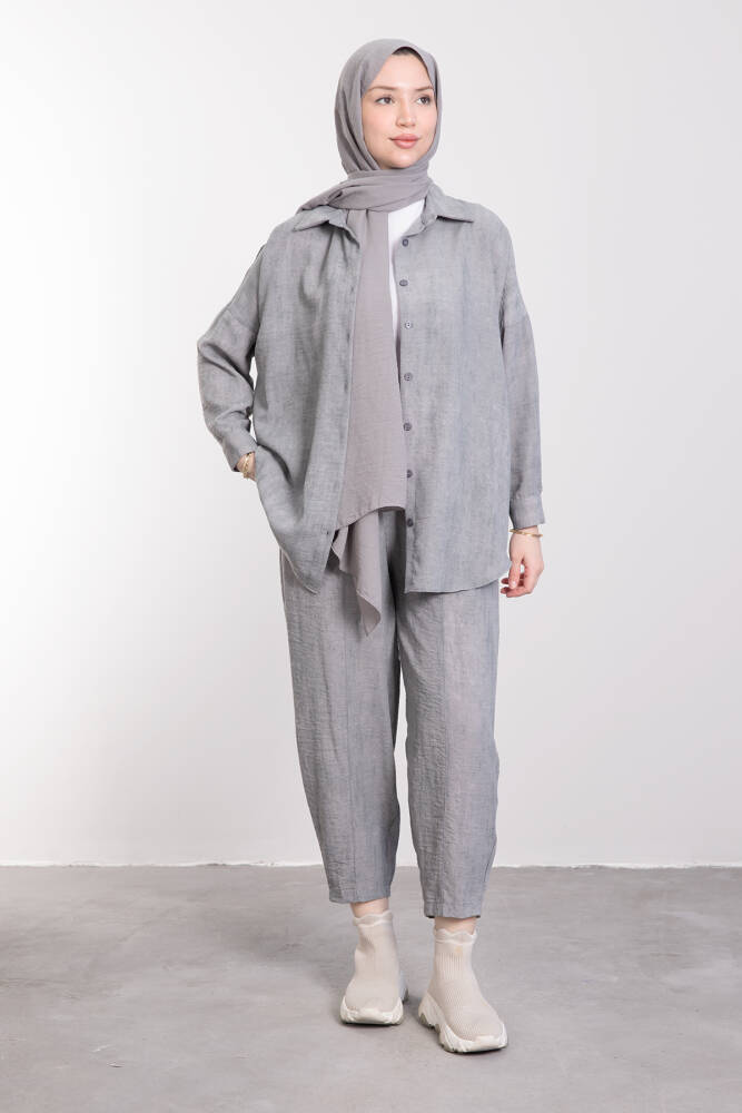 Pamuk Karışımlı Bol Kesim Takım Gri