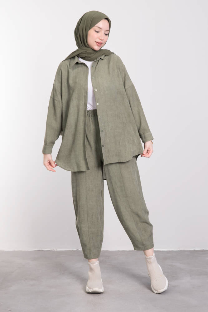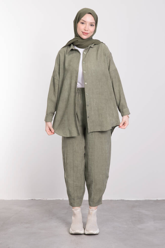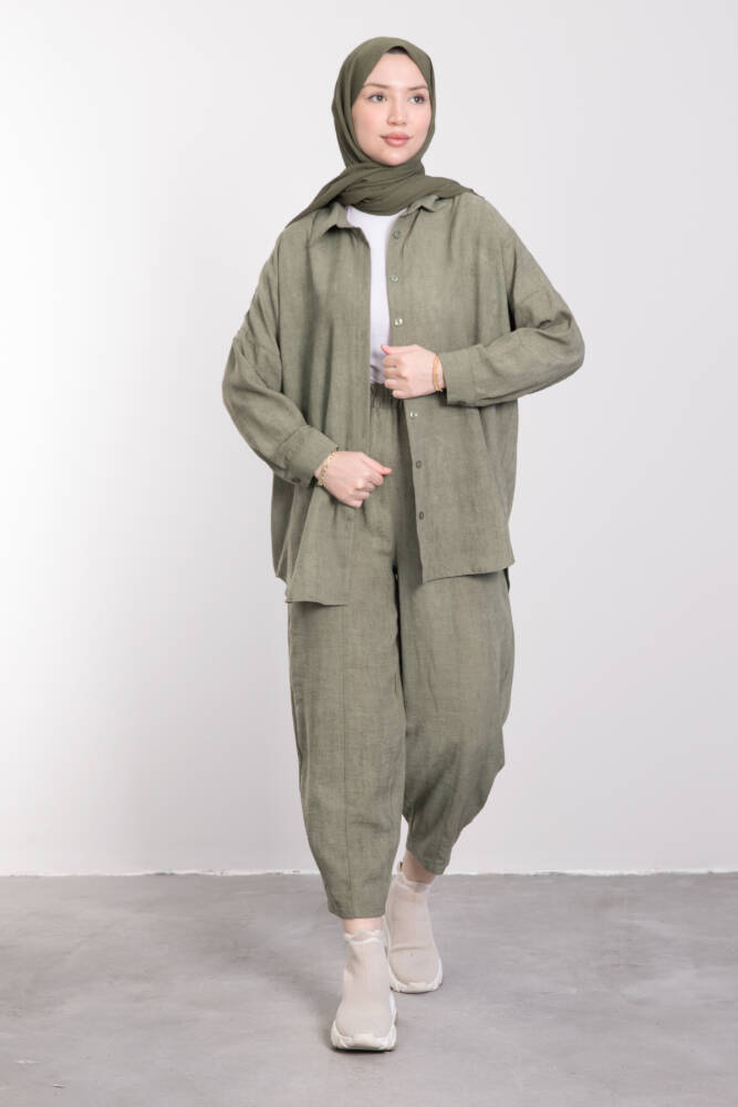 Pamuk Karışımlı Bol Kesim Takım Haki