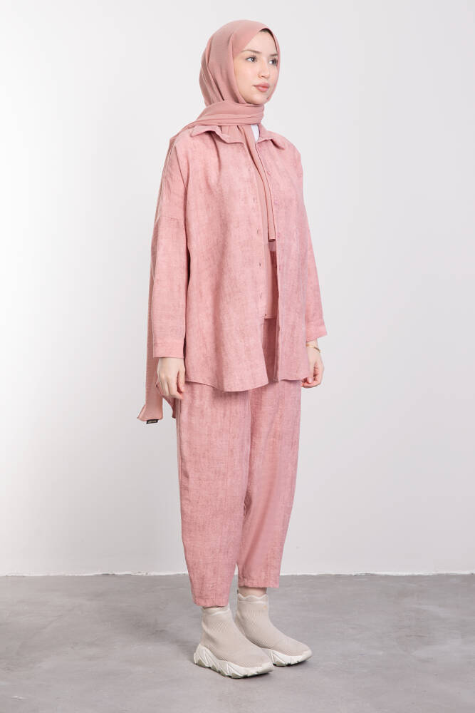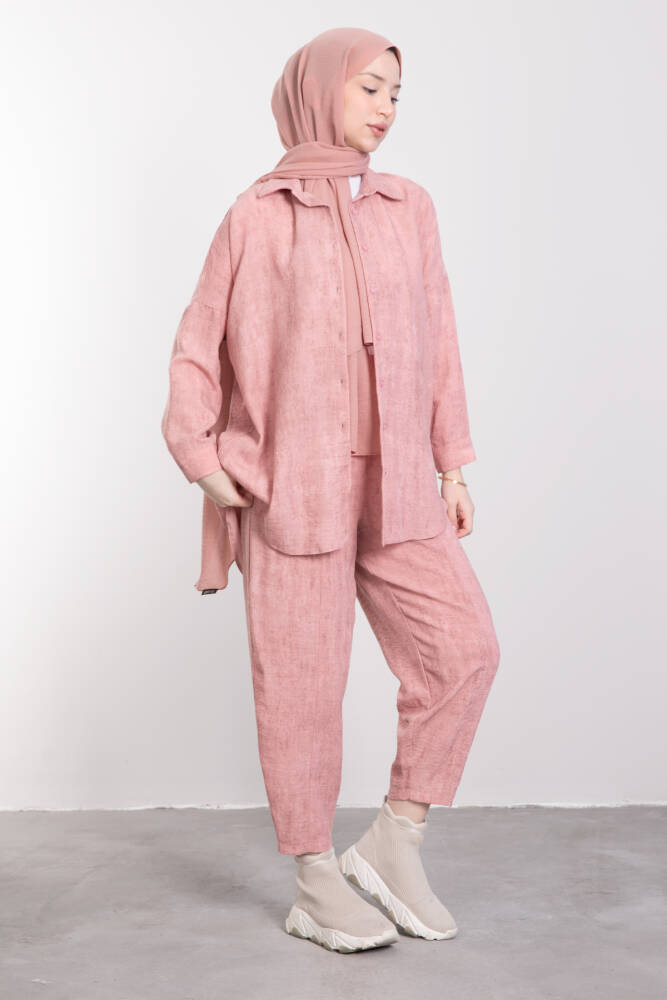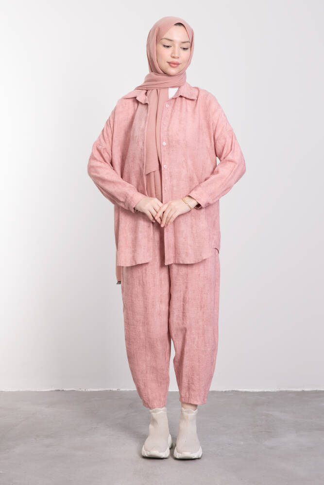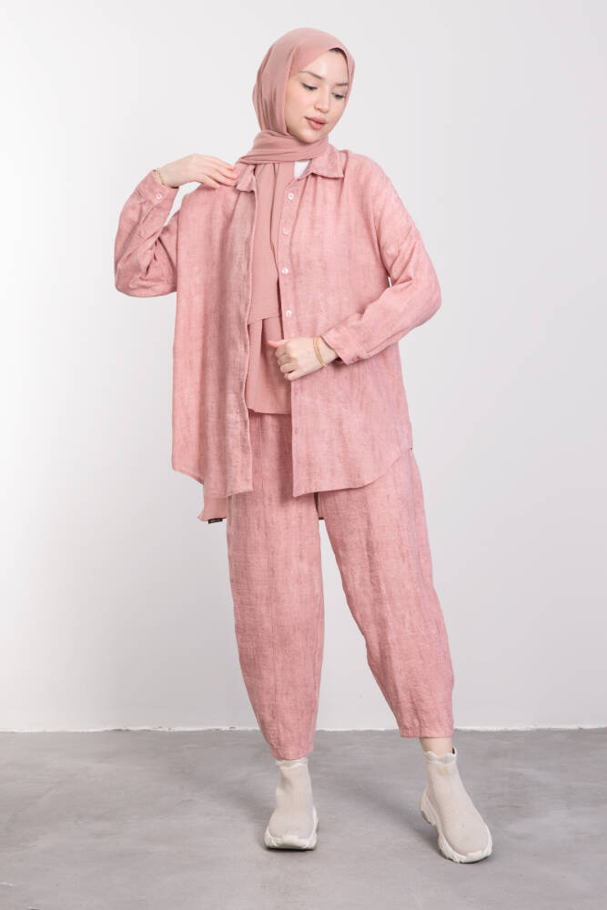 Pamuk Karışımlı Bol Kesim Takım Pembe