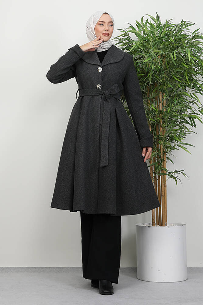 Uzun 6 Düğmeli Kaban Koyu Gri