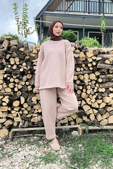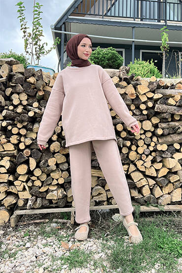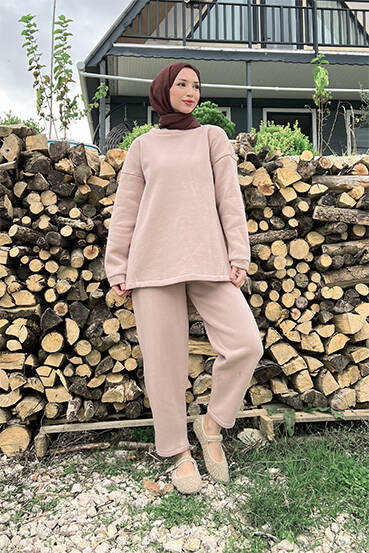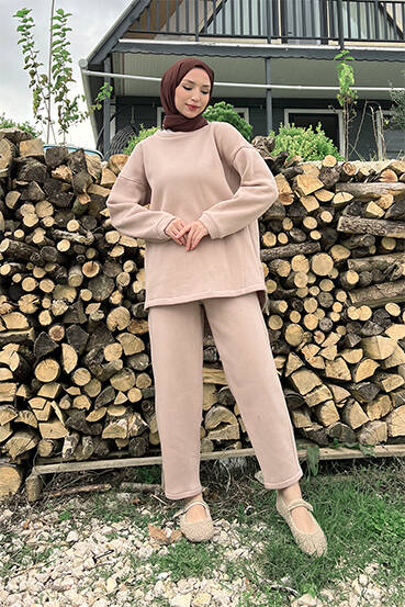 Bağcıklı Yelekli Takım Vizon