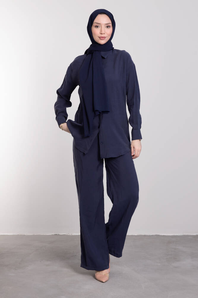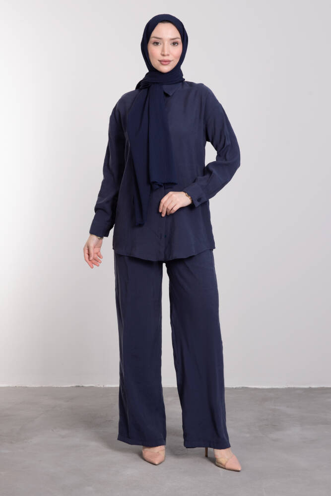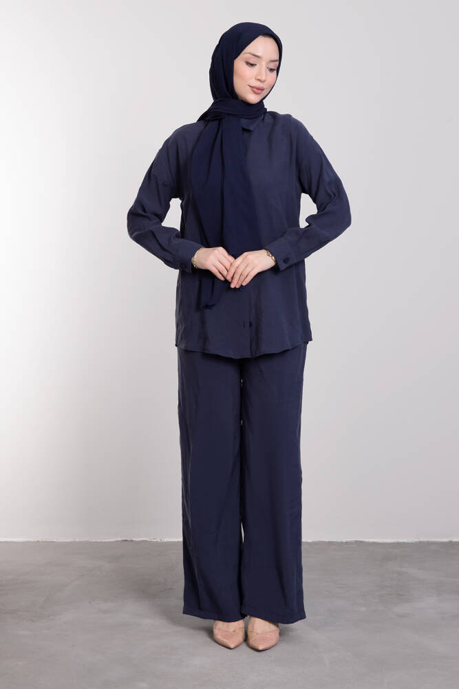 Tek Cepli Kruvaze Yaka Takım İndigo