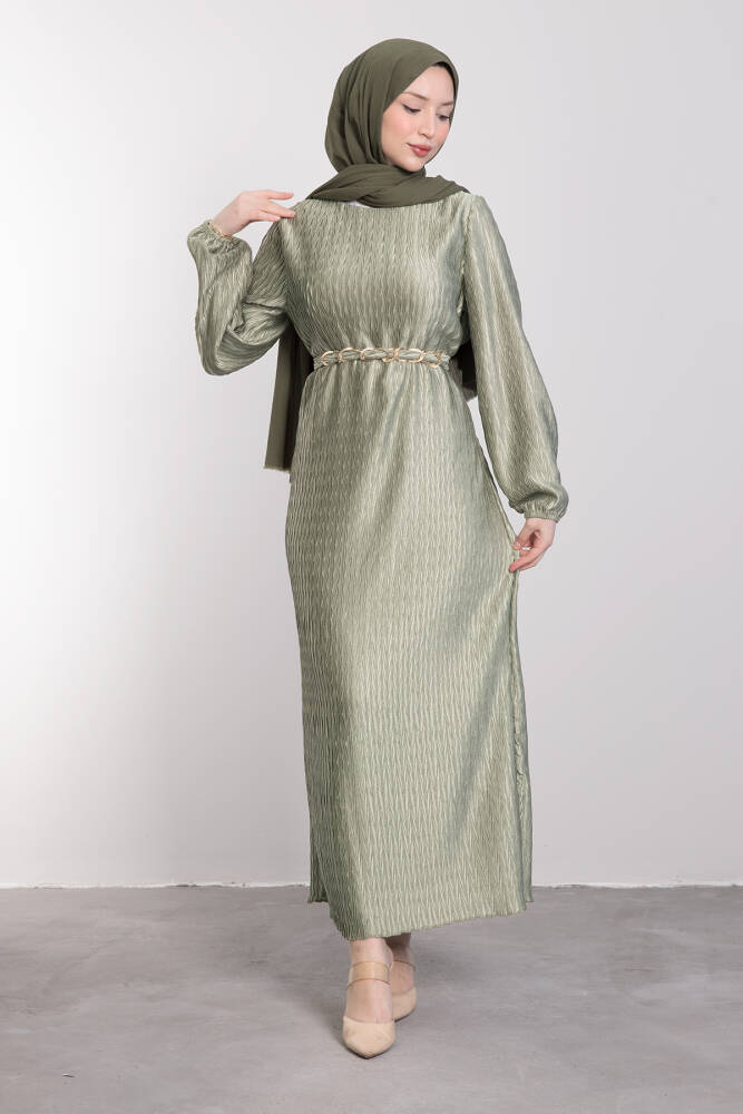 Modern Beli Ayarlanabilir Elbise Soft Yeşil