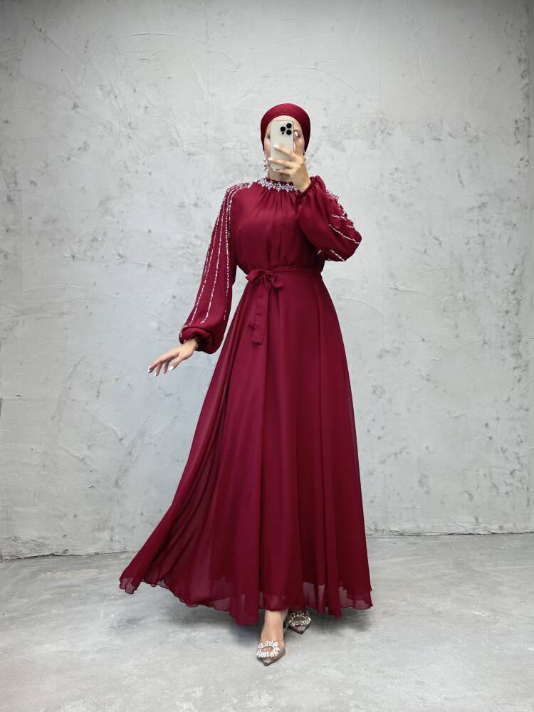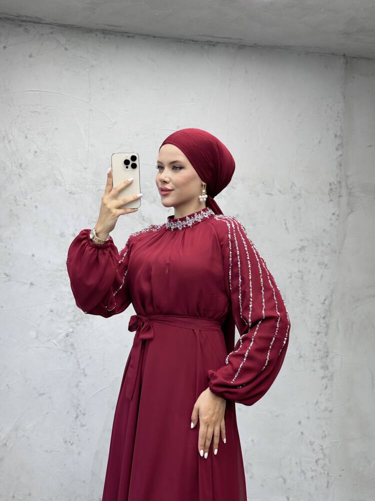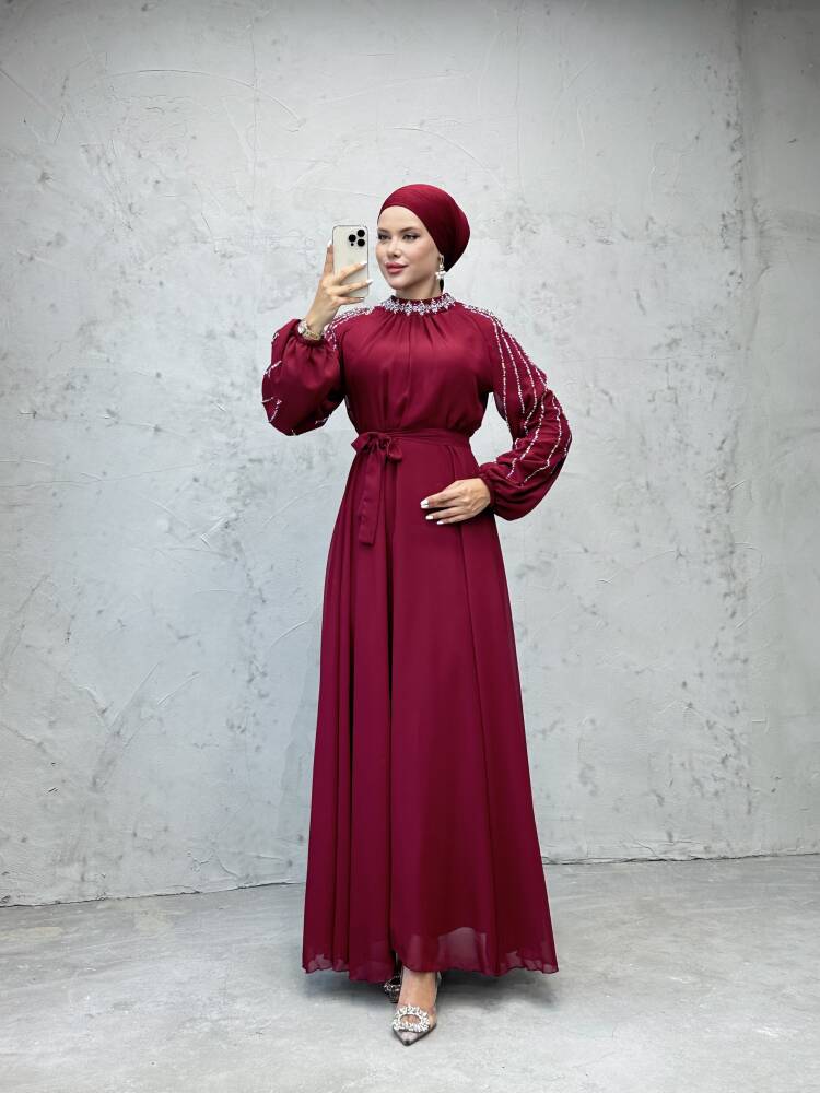 Semra Tesettür Elbise Bordo