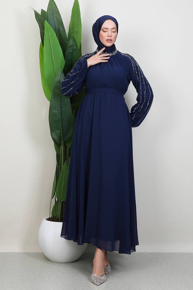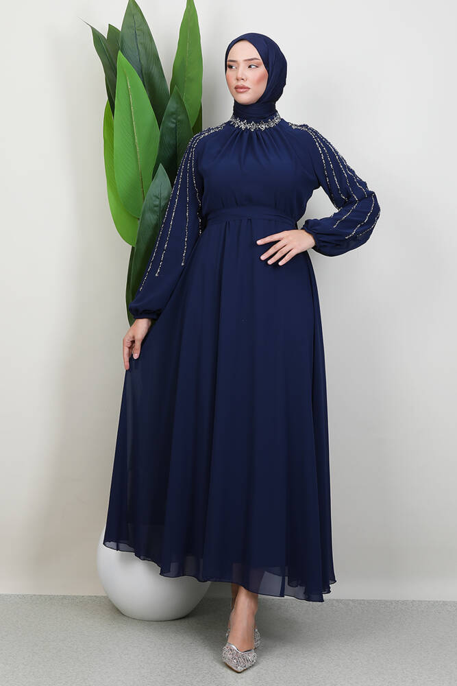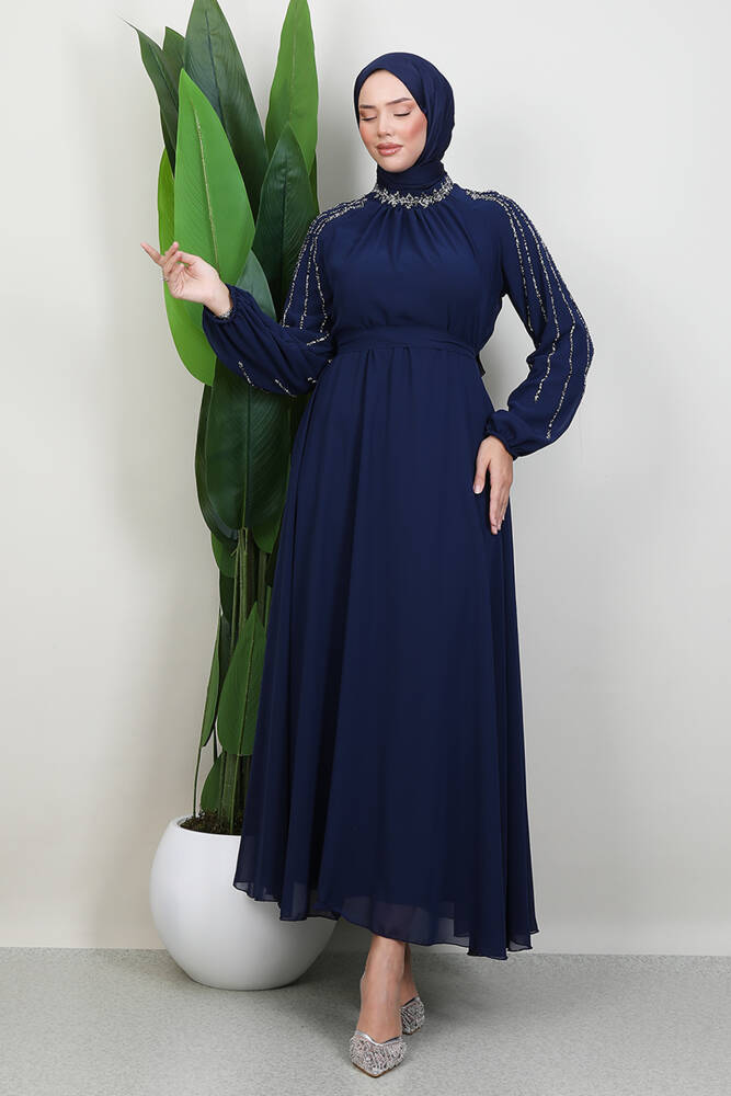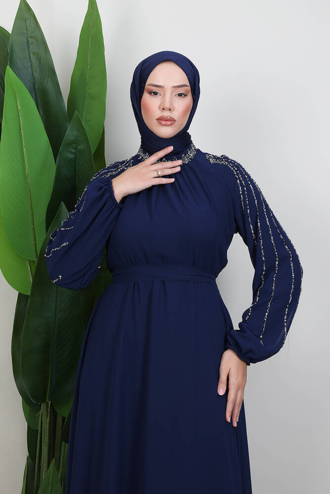 Gaye Taşlı Elbise Lacivert