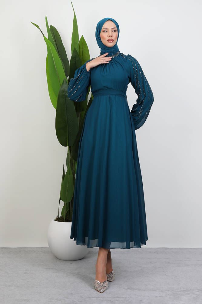 Semra Tesettür Elbise Petrol