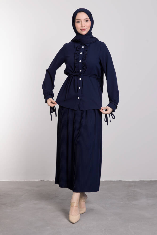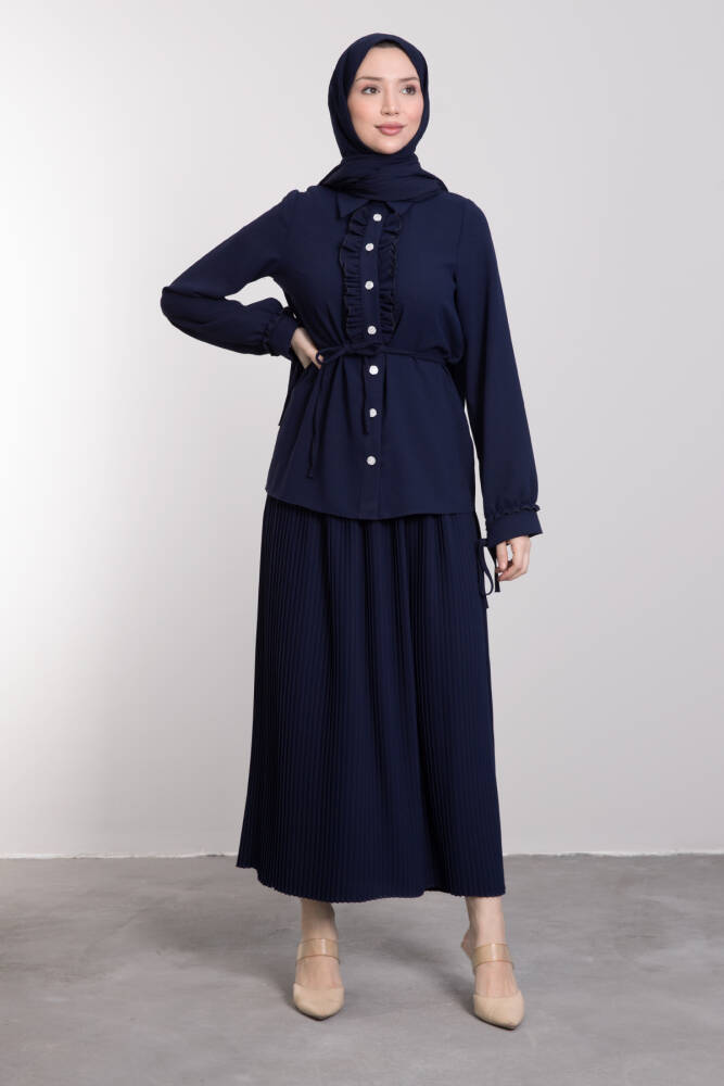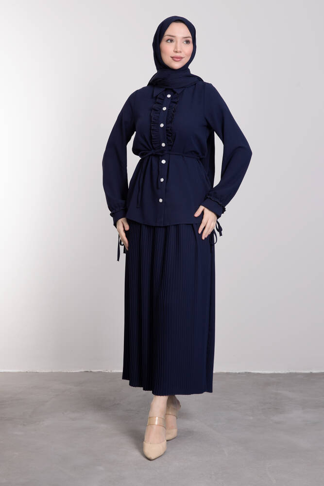 Şerit Fırfırlı Pilise Etekli Takım Lacivert