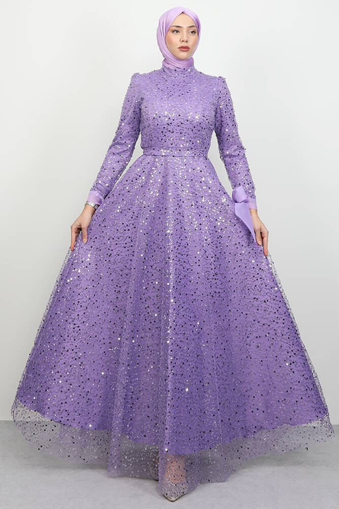Simay Tesettür Abiye Lila