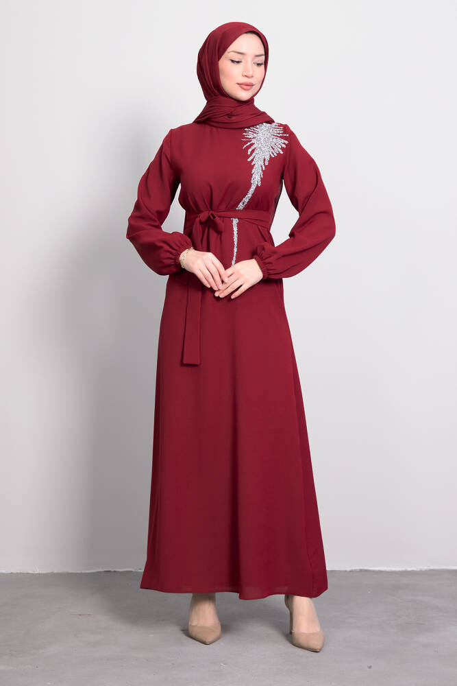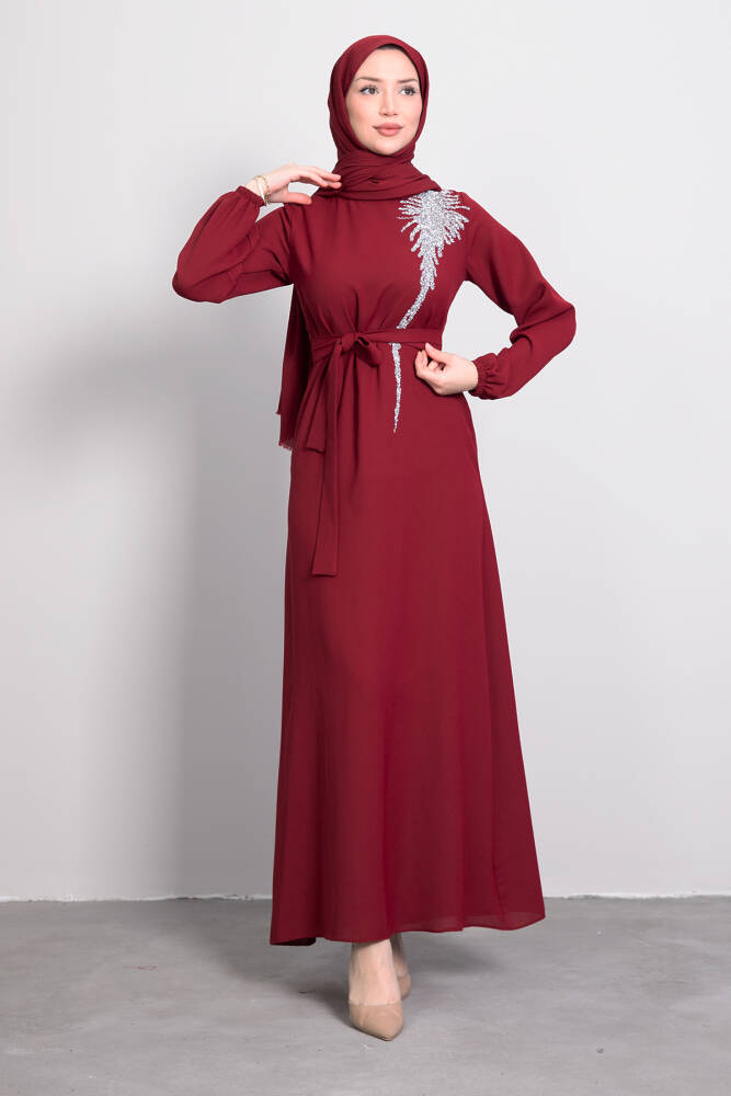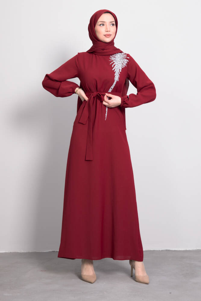 -AKSESUAR : Sırttan kullanılabilir fermuar mevcuttur. Seyyar kuşaklıdır. Kol ucu lastiklidir. Taşlar ürüne yapıştırmadır.