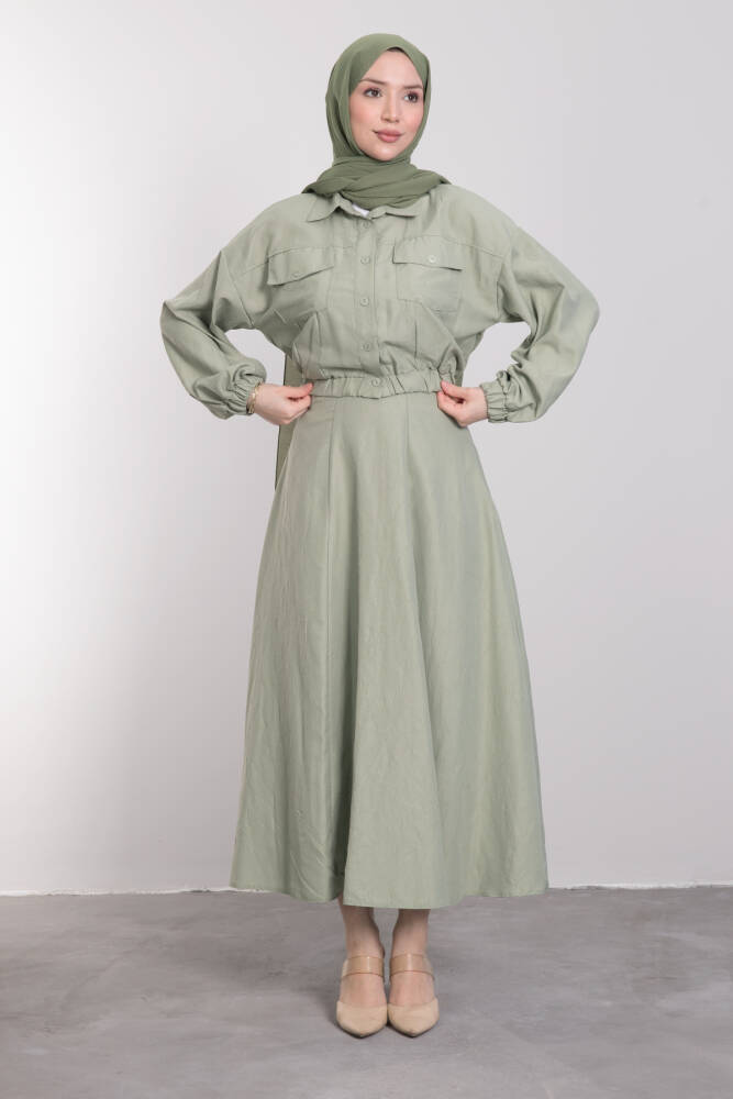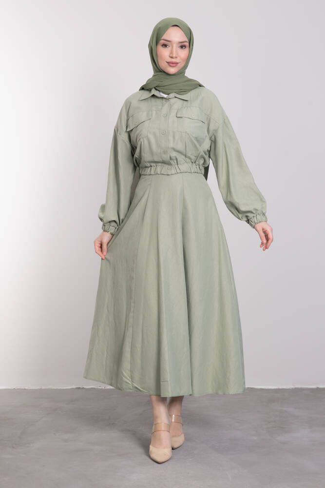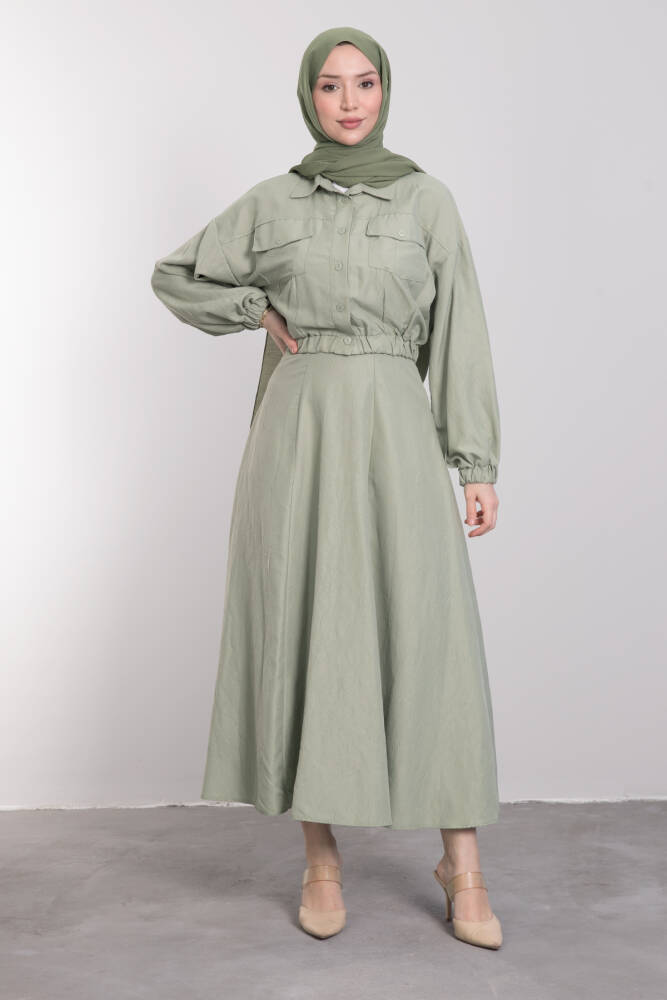 Spor Crop Ceketli Etekli Takım Soft Yeşil