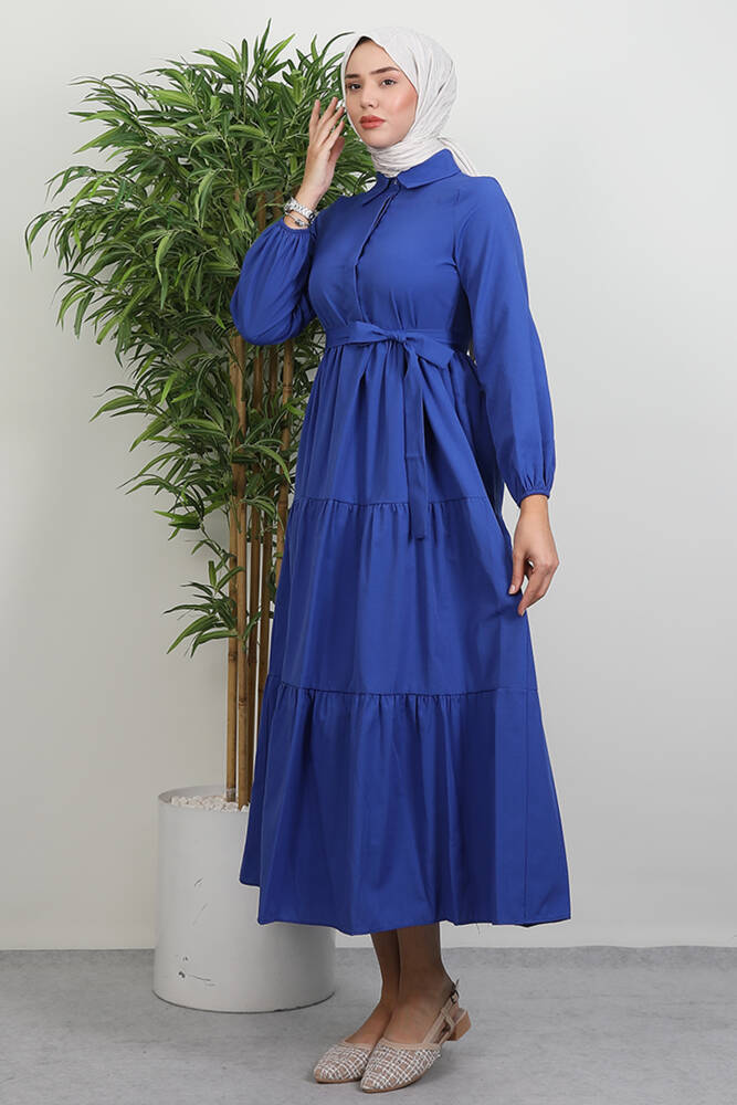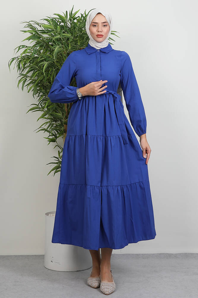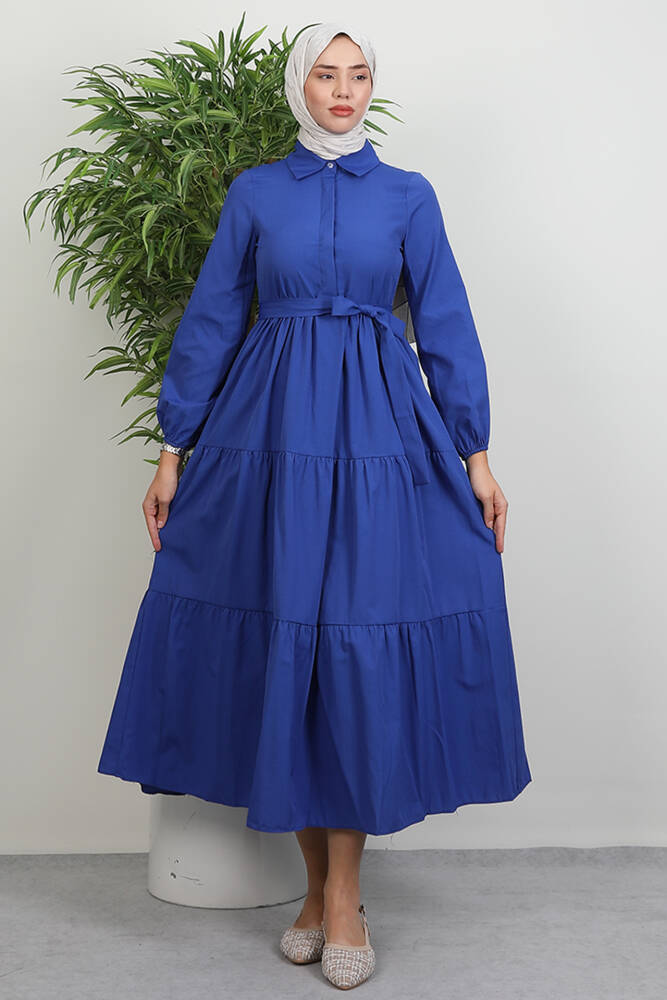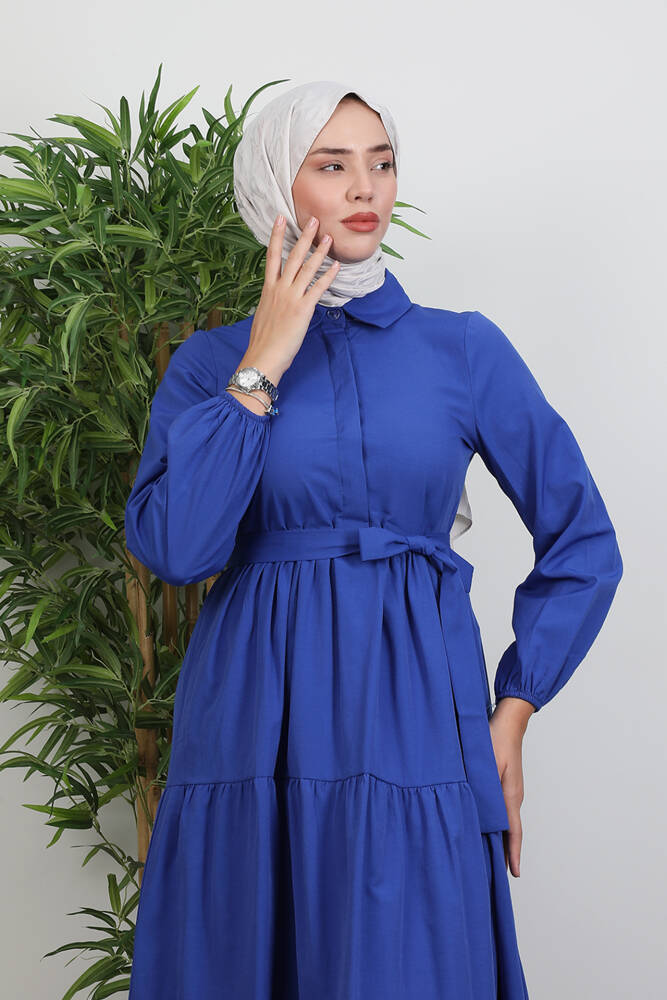 Standart Yaka Düğmeli Elbise Lacivert