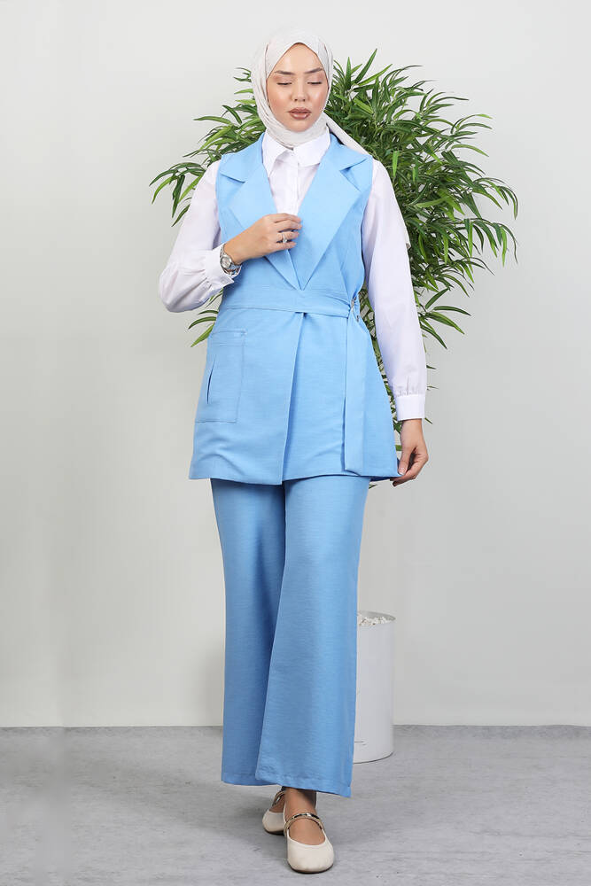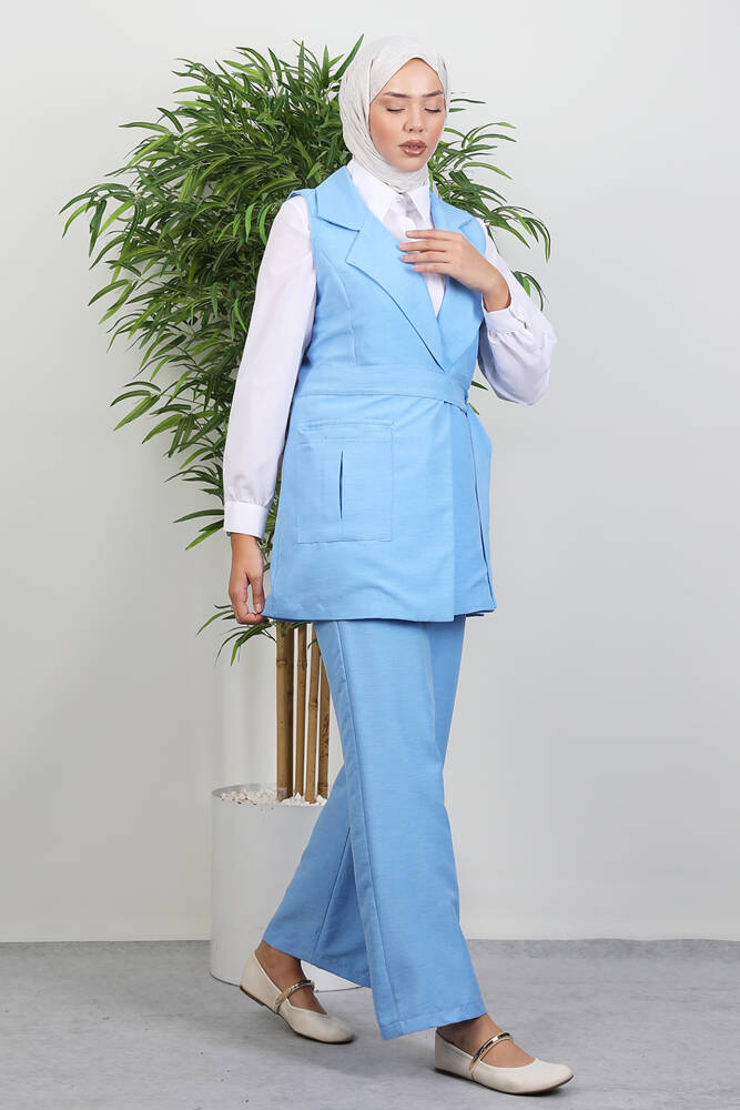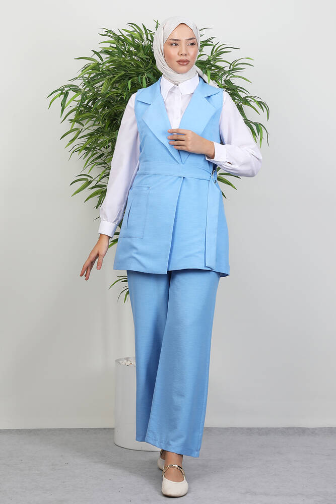 Tek Cepli Kruvaze Yaka Takım Bebe Mavi