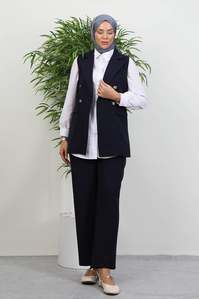Tomris Yelekli Takım Lacivert