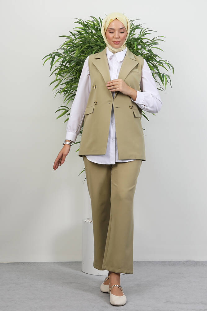 Tomris Yelekli Takım Soft Yeşil