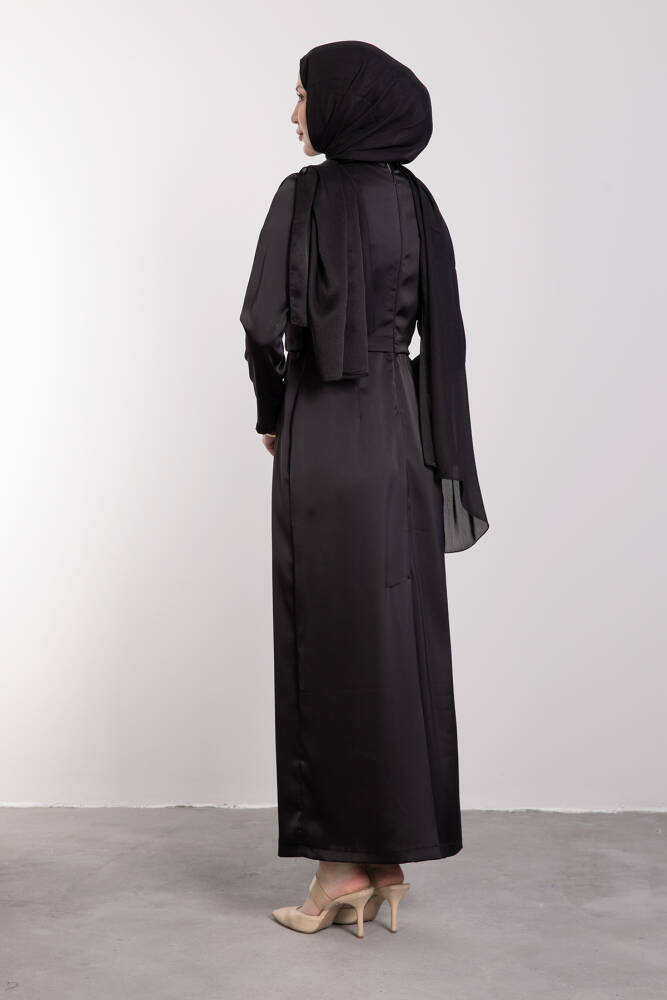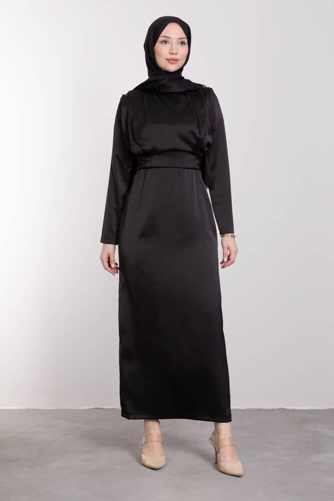 Üstü Dökümlü Bele Oturan Elbise Siyah