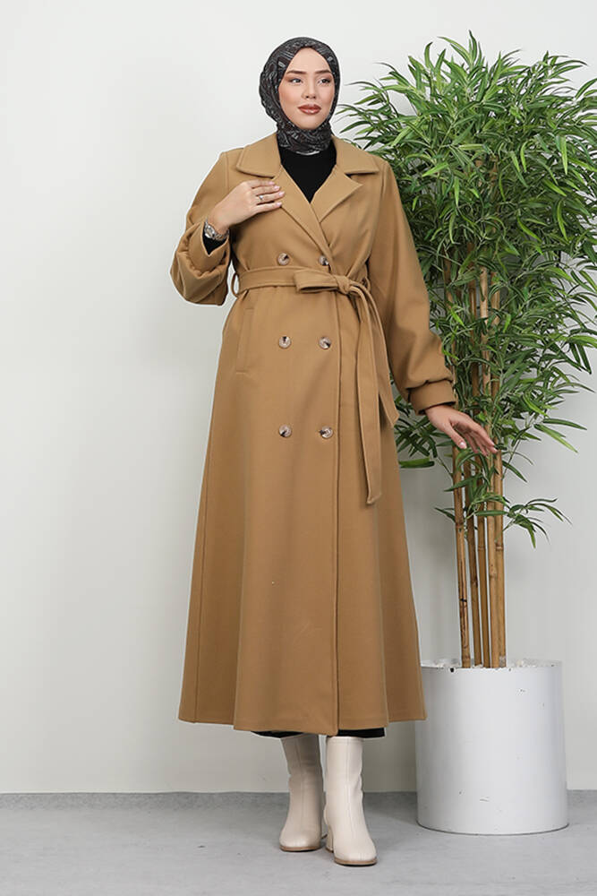 Uzun 6 Düğmeli Kaban Sütlükahve