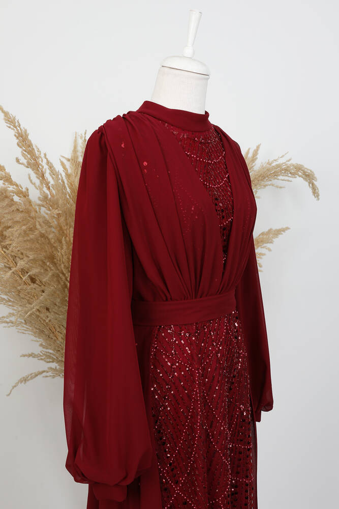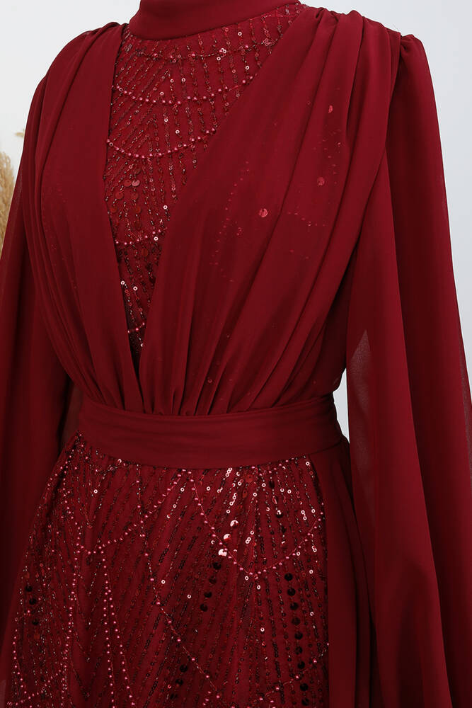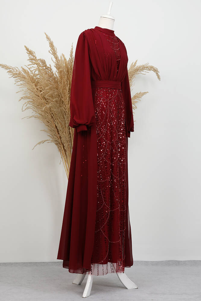 Kumaş Özelliği : Tül üzerine işleme şifon kumaştan imal edilmiştir.