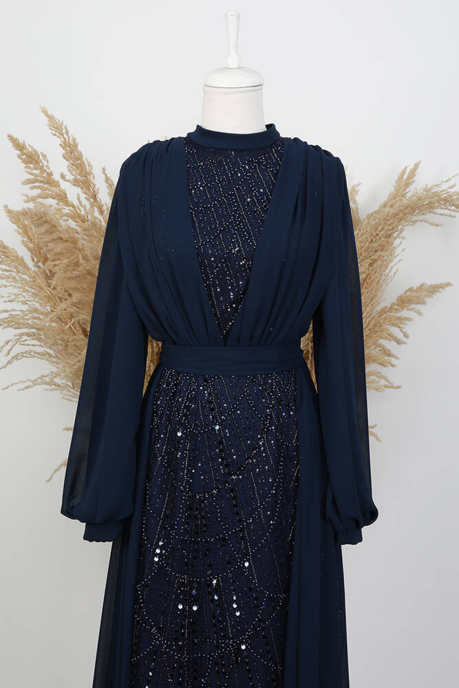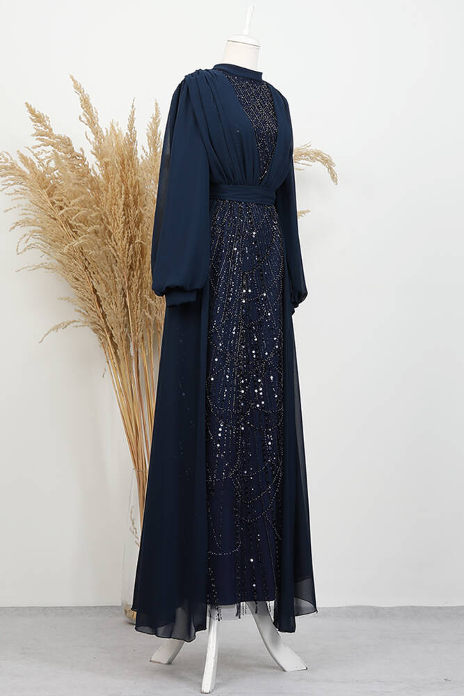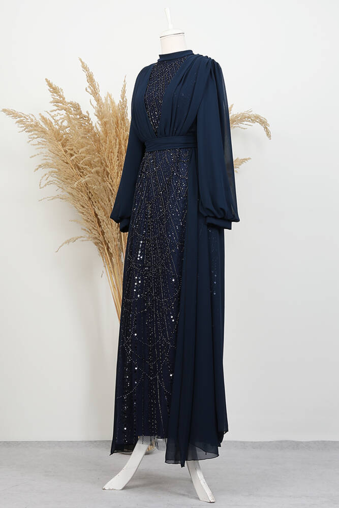 Kumaş Özelliği : Tül üzerine işleme şifon kumaştan imal edilmiştir.