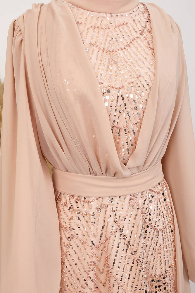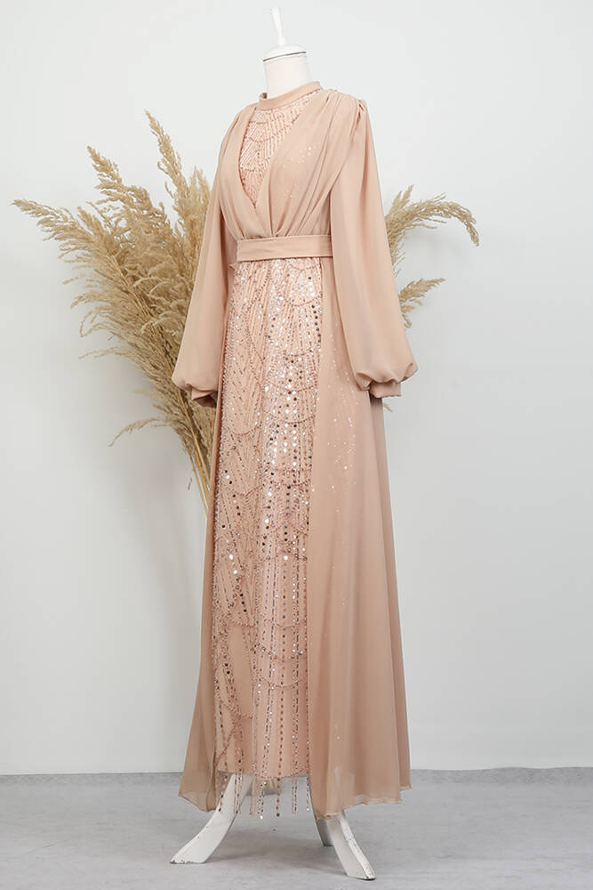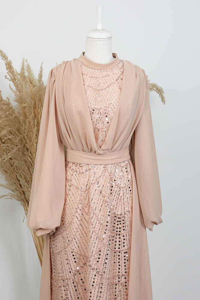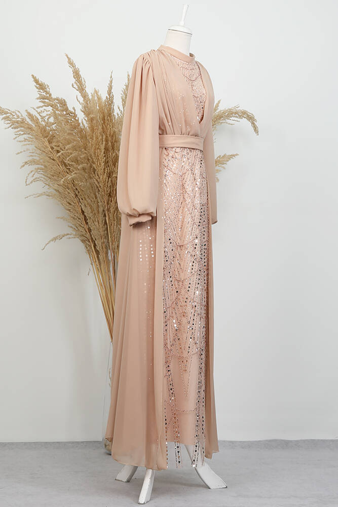 Kumaş Özelliği : Tül üzerine işleme şifon kumaştan imal edilmiştir.