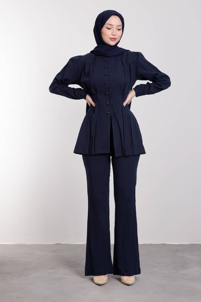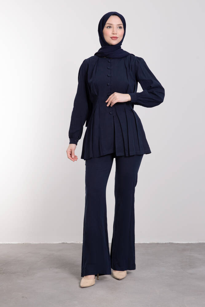 Yanları Pilise Dikişli Mini Düğmeli Takım Lacivert