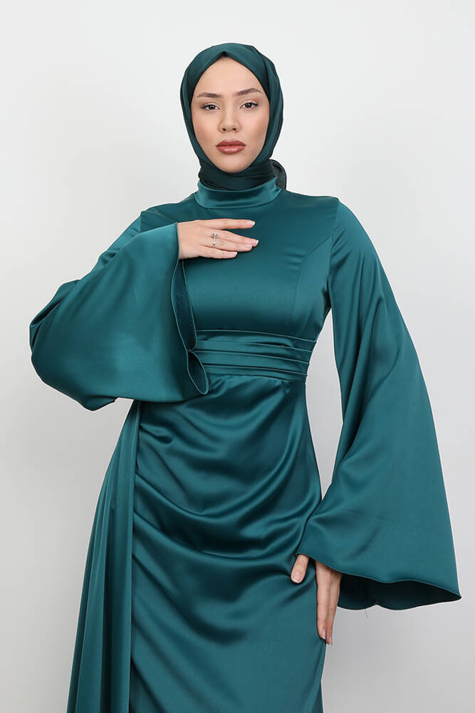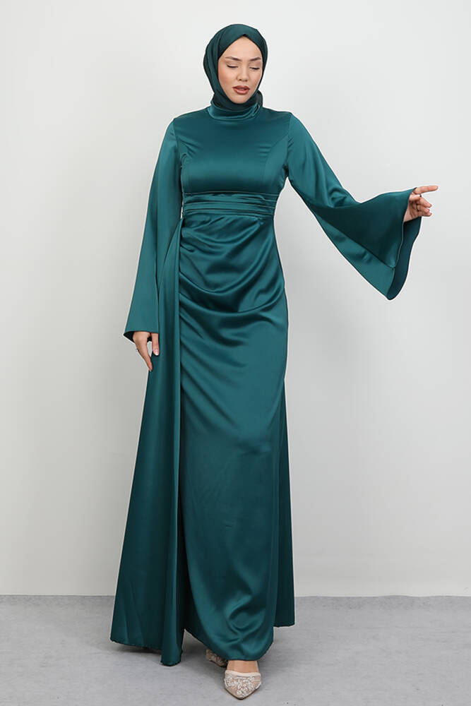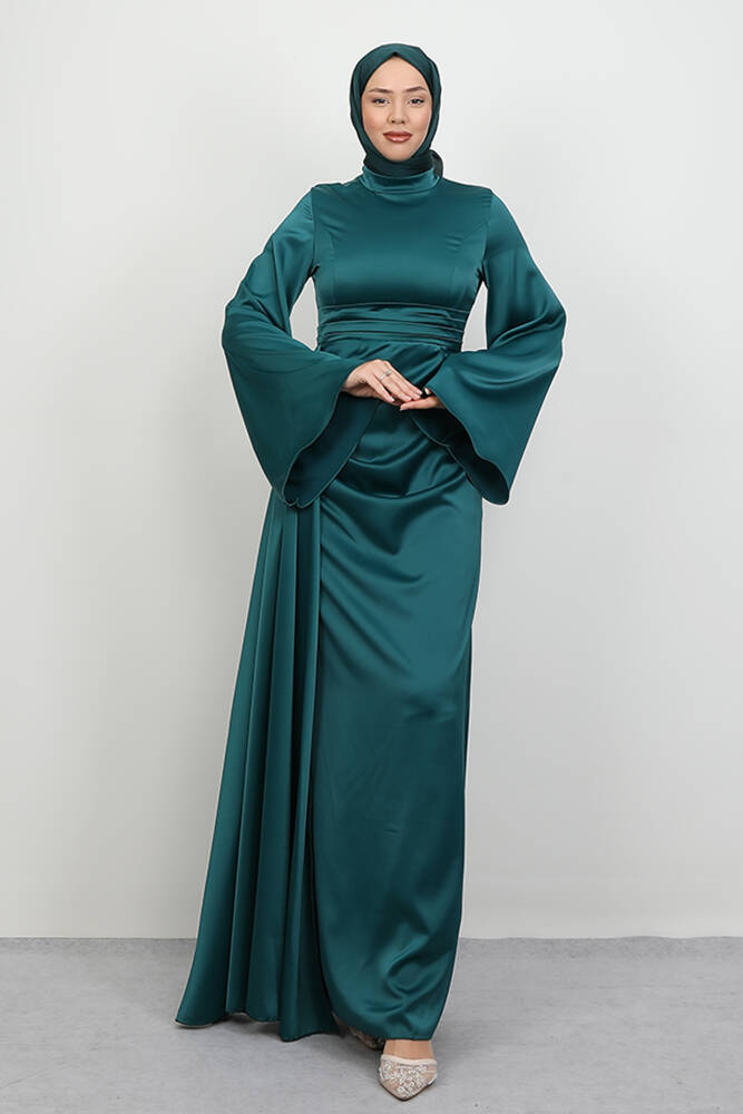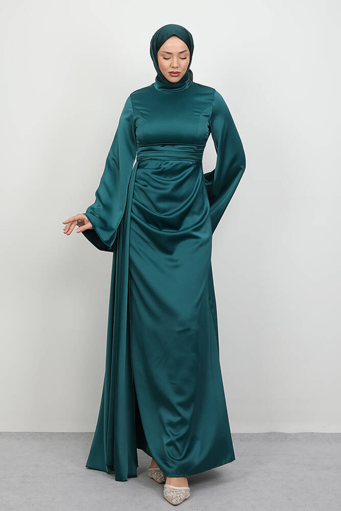 Yasemin Saten Abiye Koyu Mint