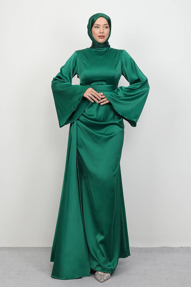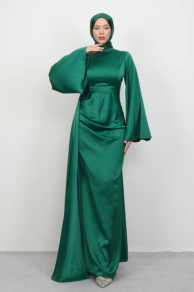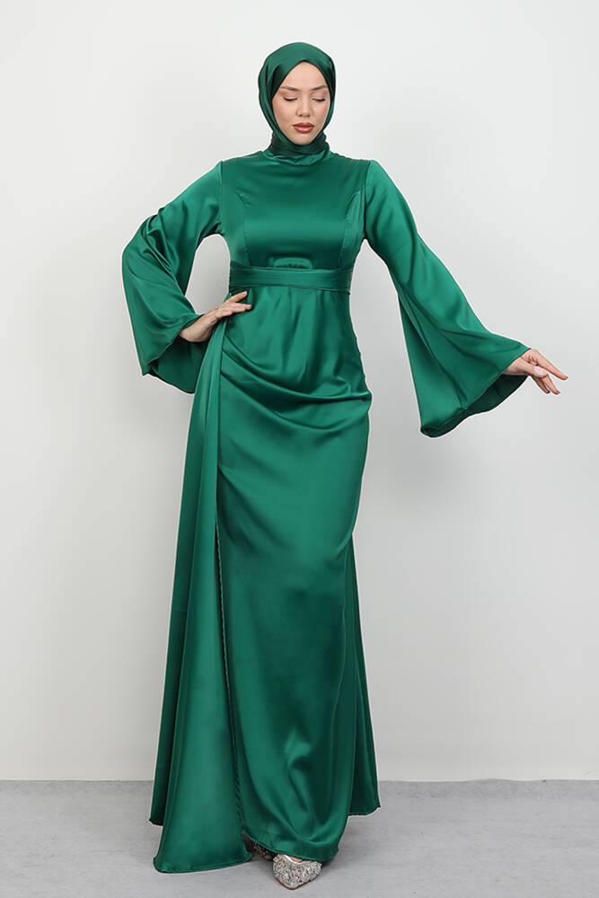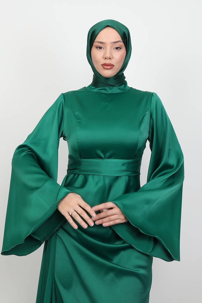 Yasemin Saten Abiye Koyu Yeşil